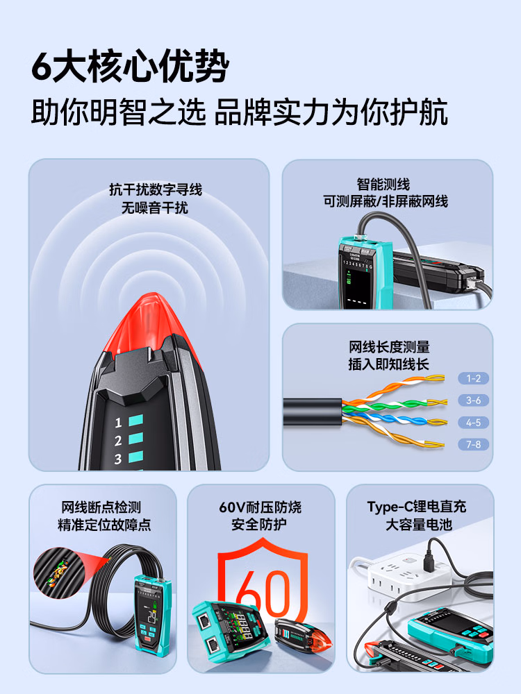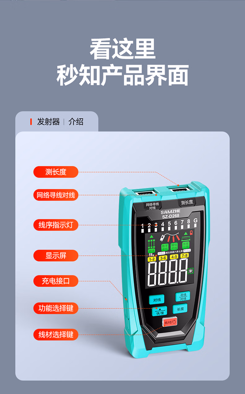 包装清单  :   多功能网络寻线仪 支持POE带电60V耐压巡线 网线长度断点测线仪找线器抗干扰 SZ-D268