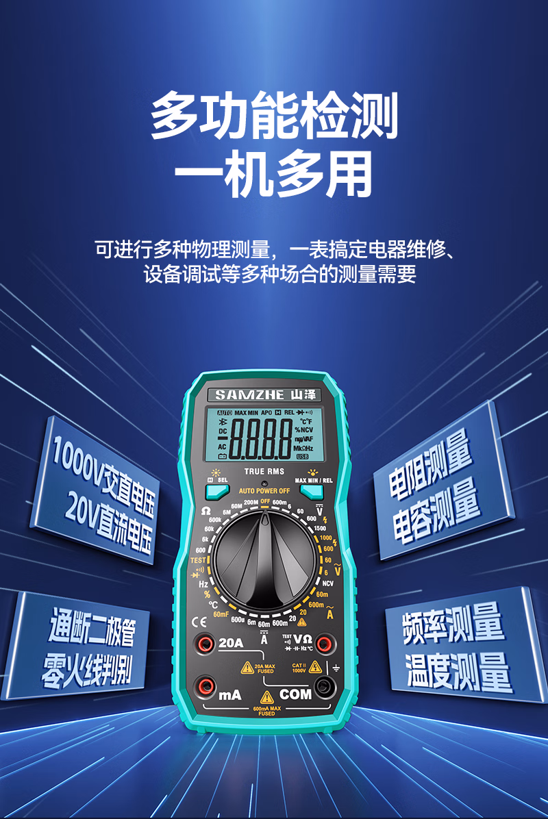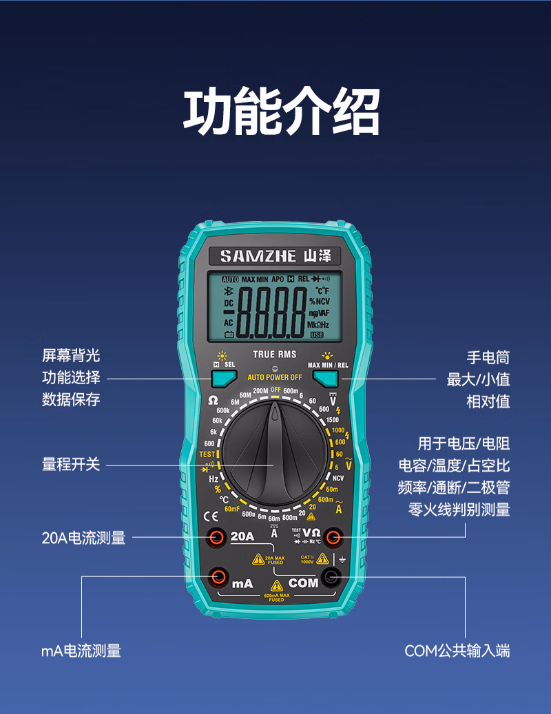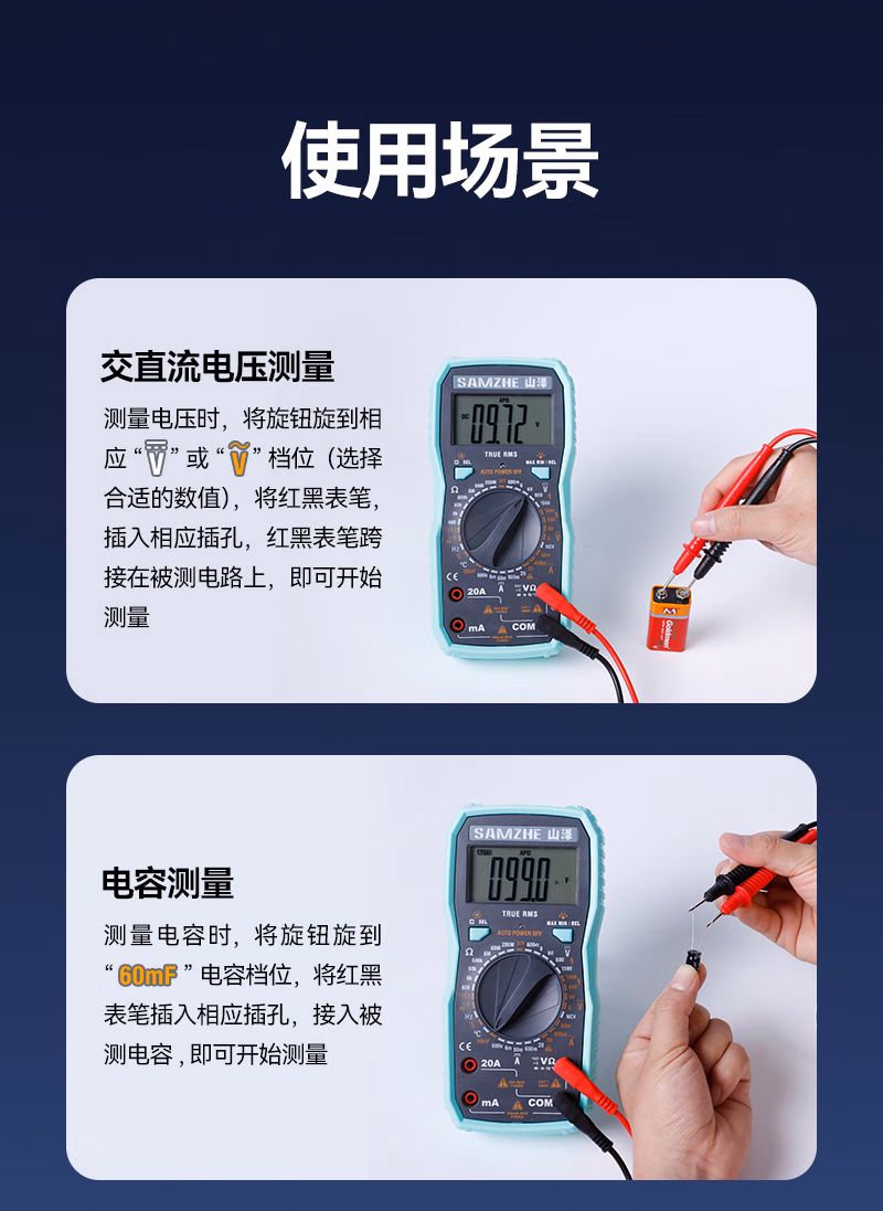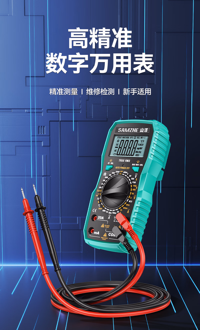 包装清单  :   山泽数字万用表高精度家用型测电压表 万能表 全自动智能防烧式数显式 电容表小型电流表电工专用WYB02