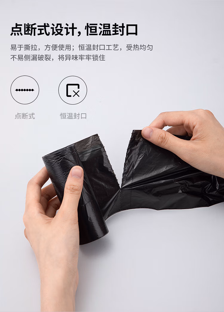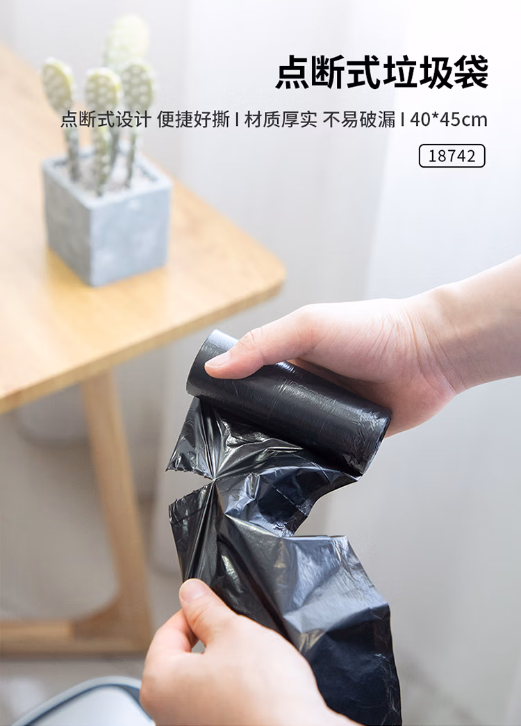 用途  :   5卷(150只)平底点断式办公生活大容量垃圾袋40*45cm 黑色18742