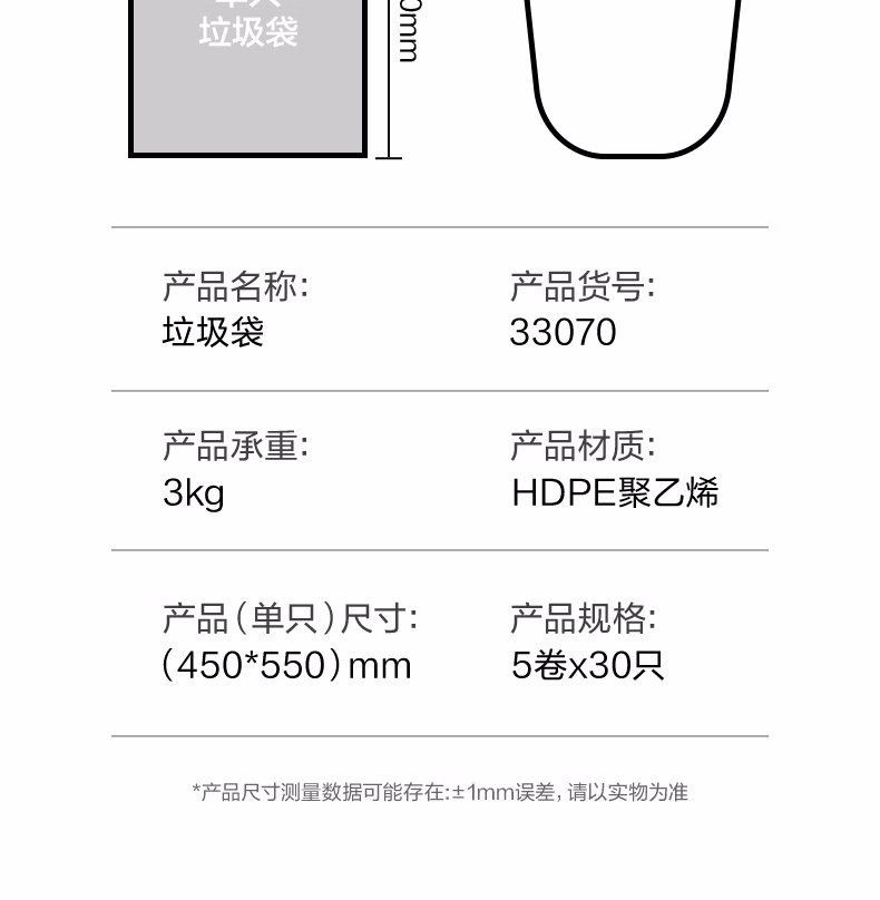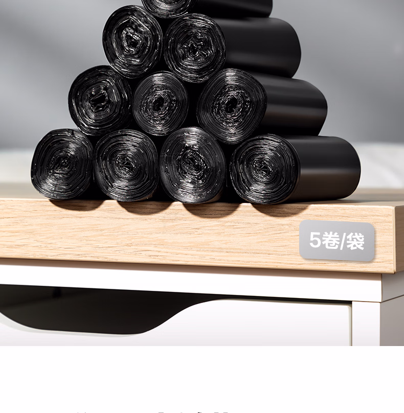 用途  :   5卷(150只)办公生活垃圾袋45*55cm 垃圾分类 办公用品 黑色33070