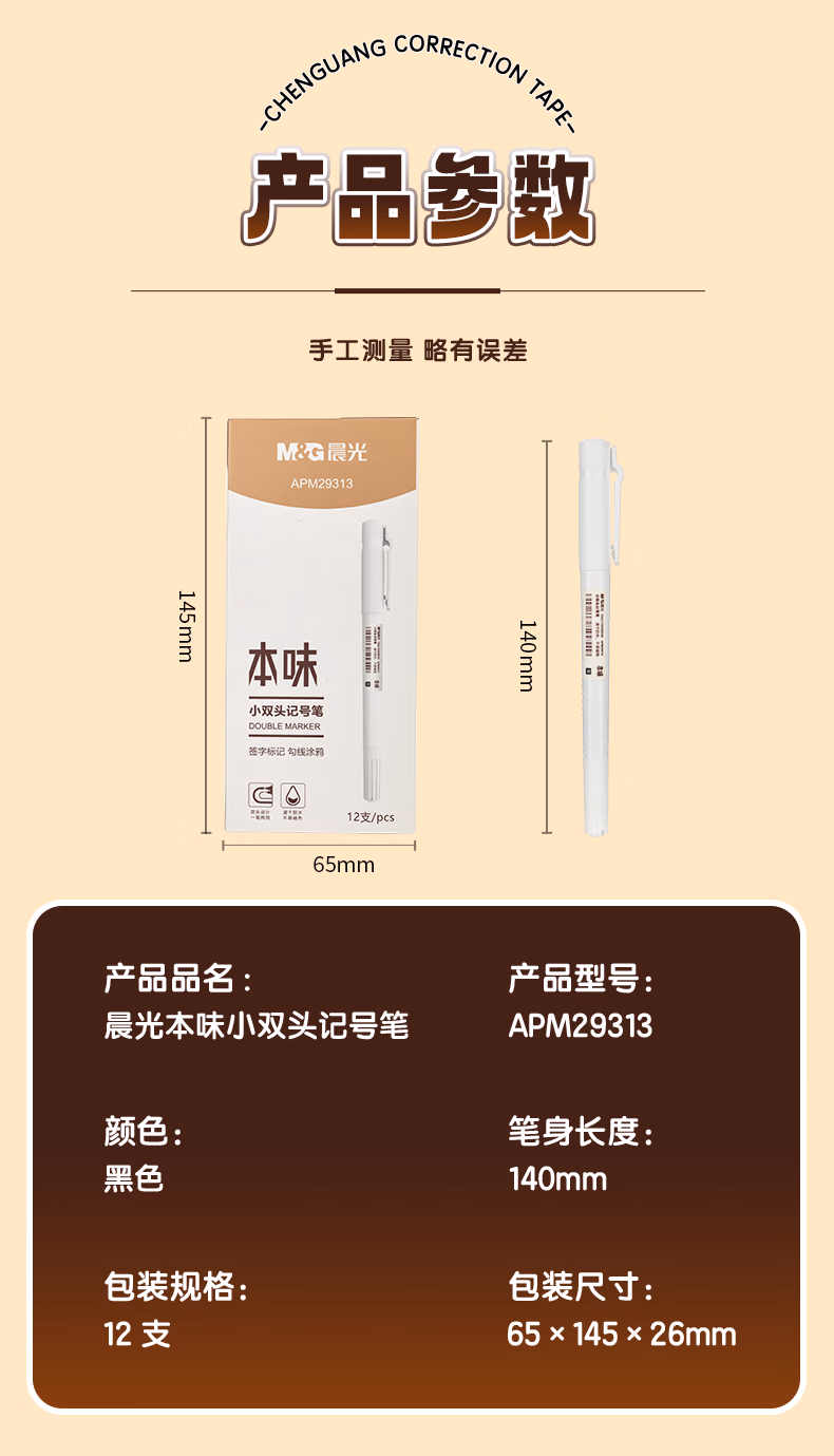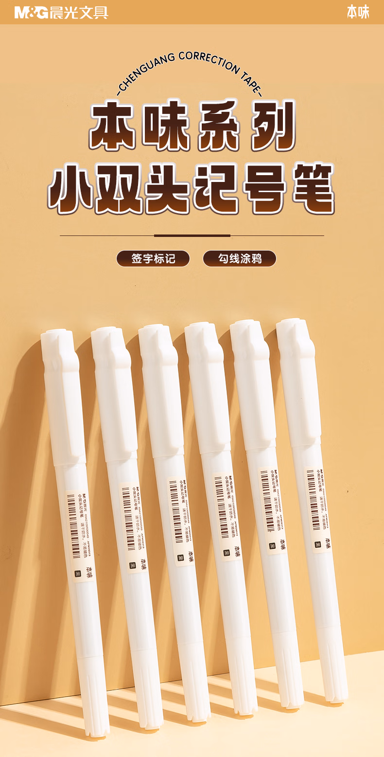 包装清单  :   晨光(M&G)本味黑色小双头细杆物流笔记号笔 办公会议快递物流签字笔 学生儿童美术绘画勾线笔 12支M29313