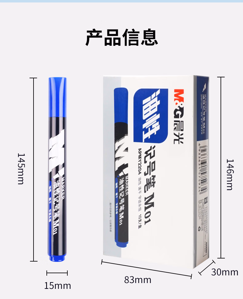 包装清单  :   晨光(M&G)粗头蓝色物流笔记号笔 油性防水马克笔 快递物流签字大头笔 10支/盒APMY2204