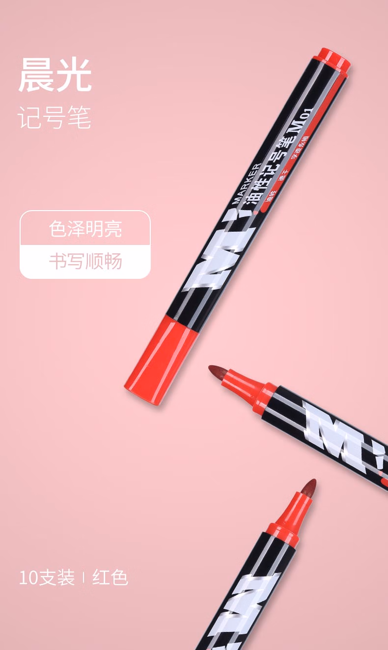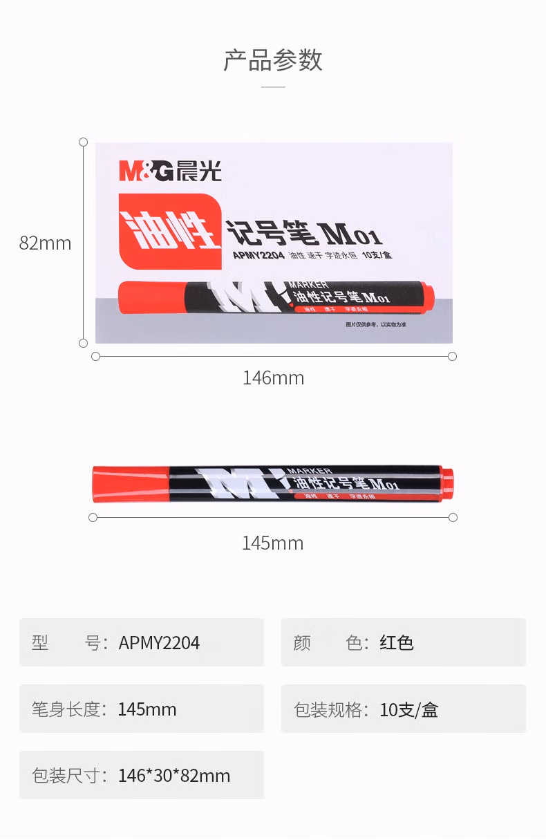 包装清单  :   晨光(M&G)粗头红色物流笔记号笔 油性防水快递物流签字笔 大头笔办公用品 10支/盒APMY2204