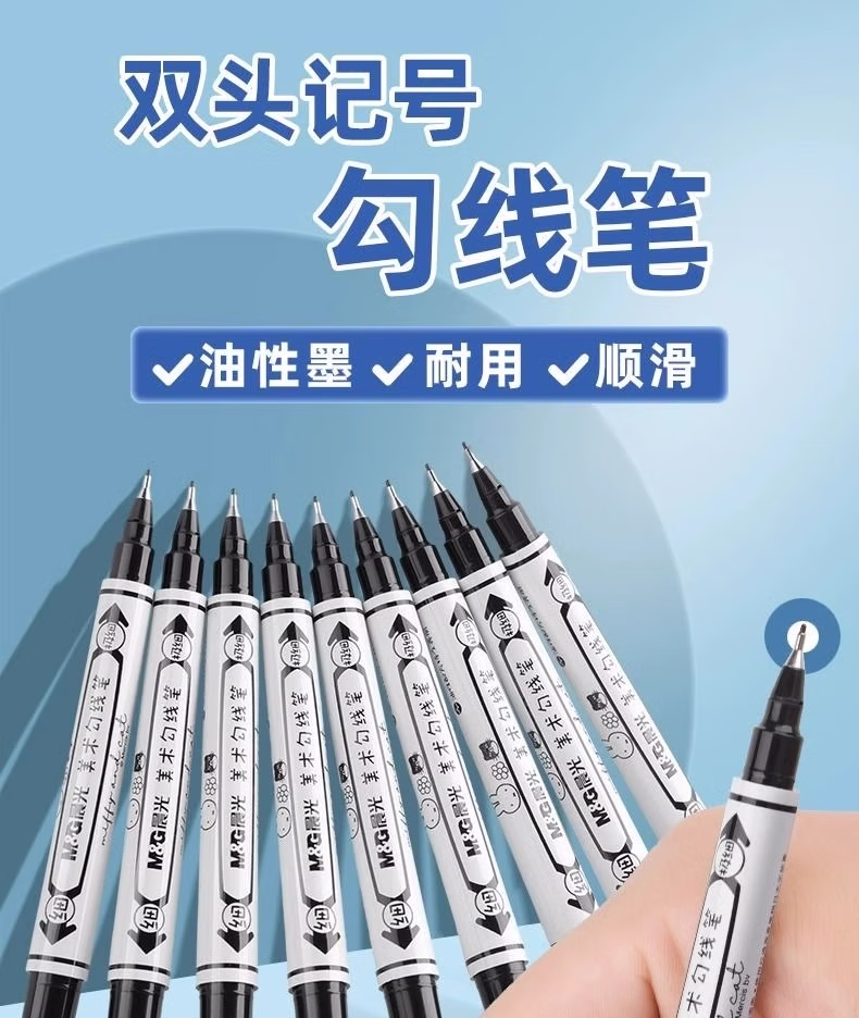 包装清单  :   晨光(M&G)黑色粗细双头记号笔 防水马克笔油性笔 儿童学生勾线笔 办公用品12支SPM21302A