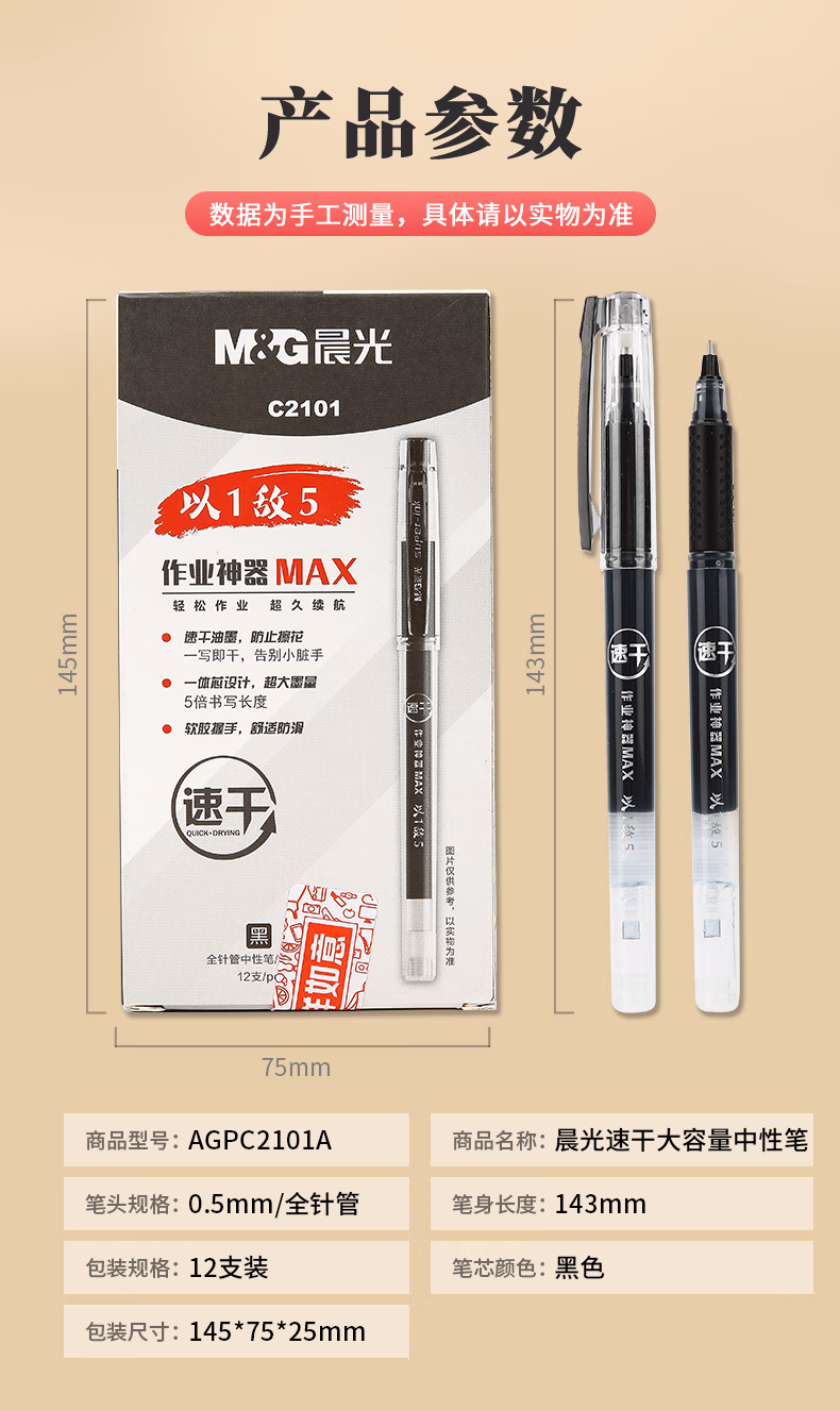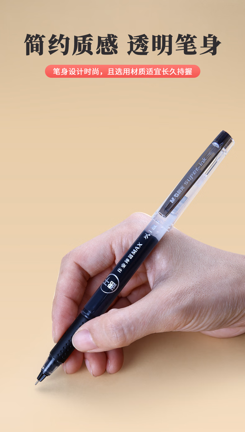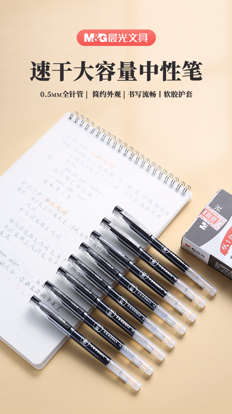包装清单  :   晨光(M&G)文具 拔帽中性笔0.5学生黑笔签字笔商务全针管大容量水笔办公用品 黑色 12支/盒