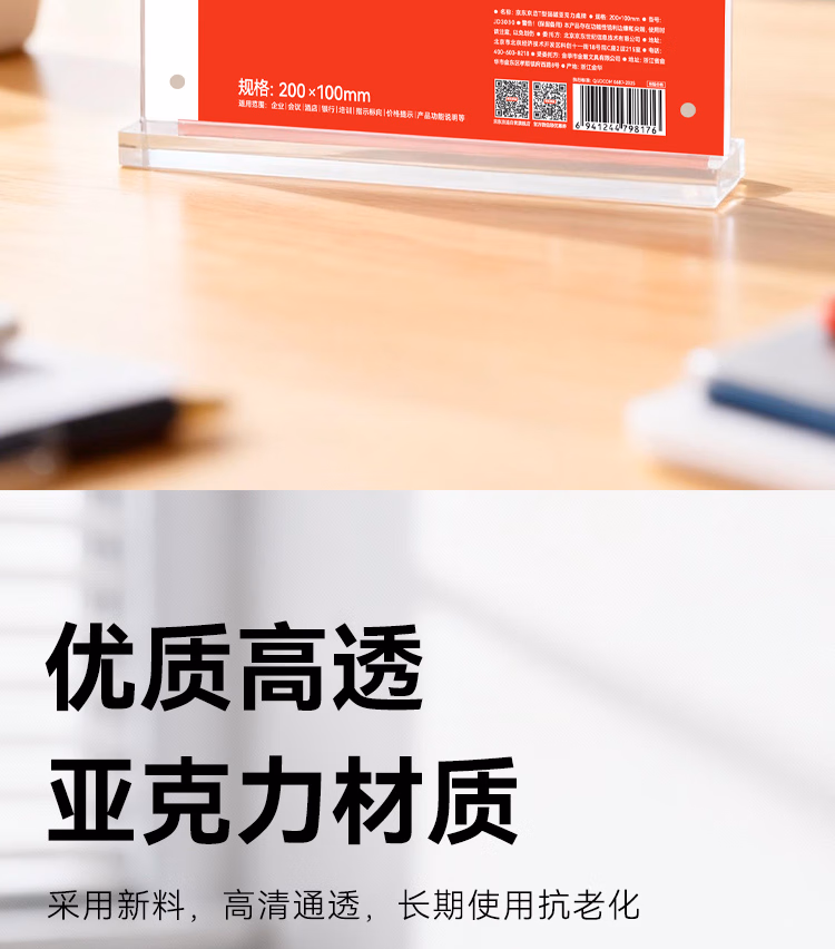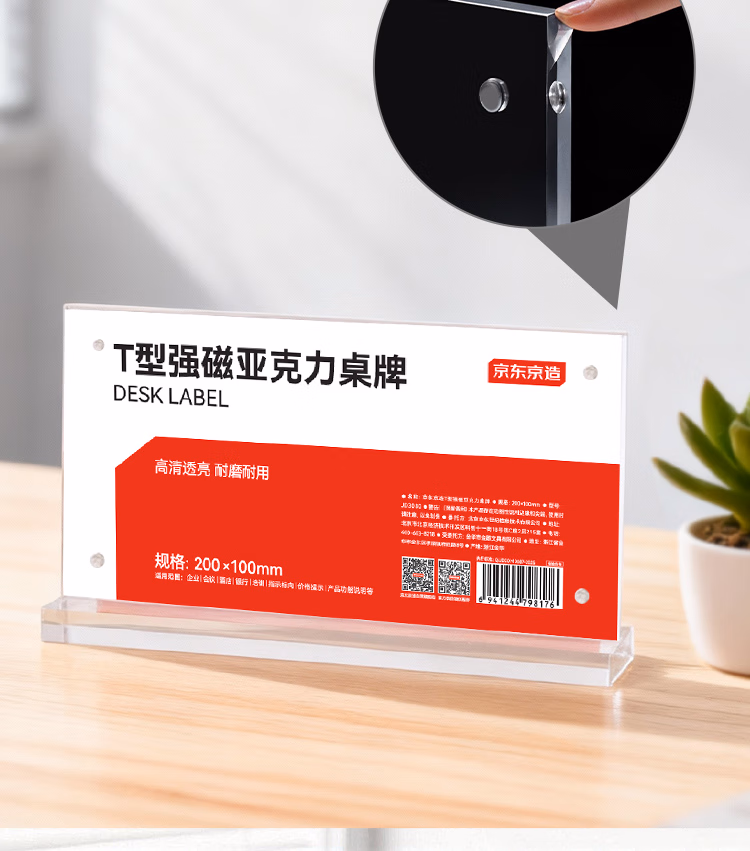 包装清单  :   京东京造T型200*100mm强磁吸附亚克力价格展示牌立牌广告牌 会议姓名牌座位牌席位卡办公用品