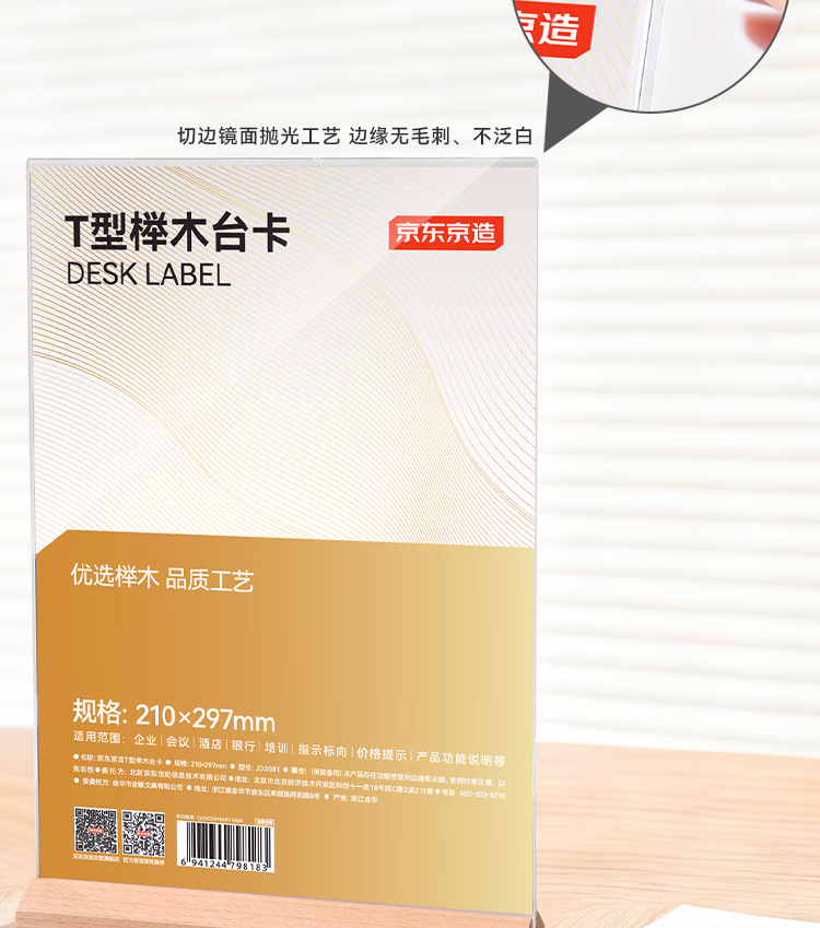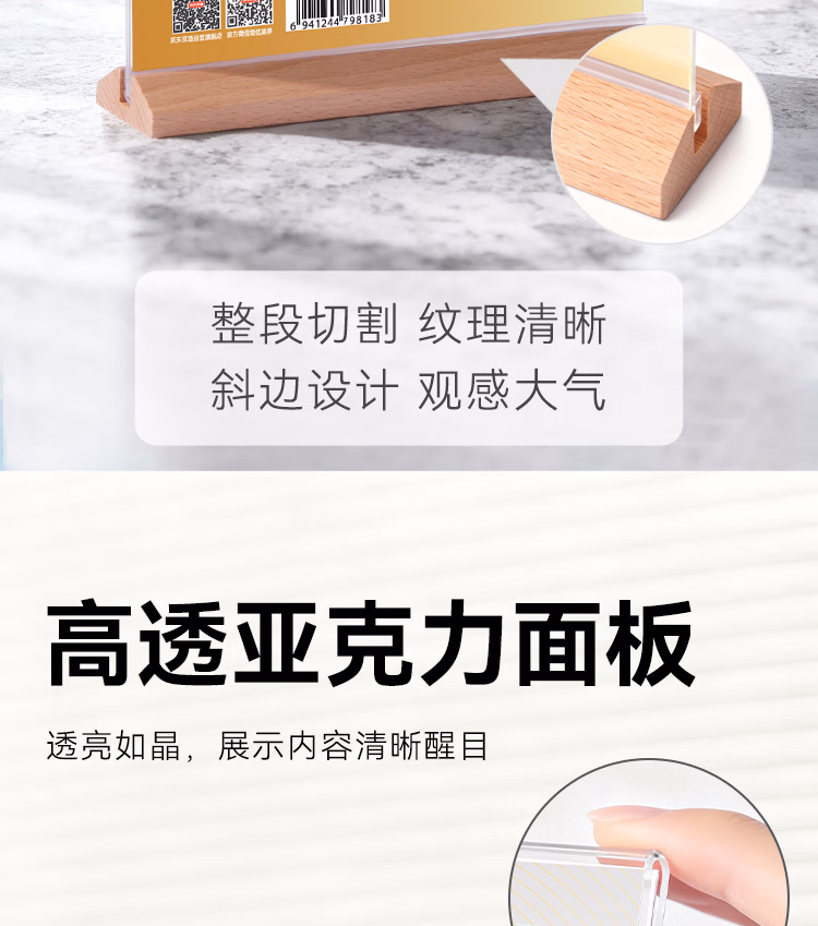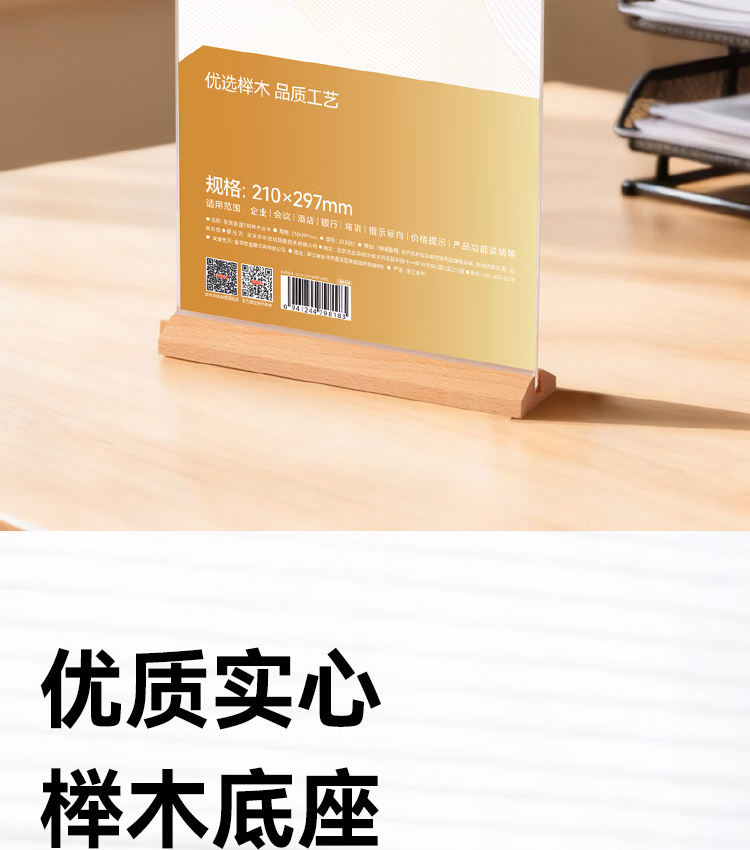 包装清单  :   京东京造T型210*297mm亚克力桌牌榉木底座台卡A4立牌双面价格展示牌广告牌 会议指示牌办公用品餐厅咖啡馆