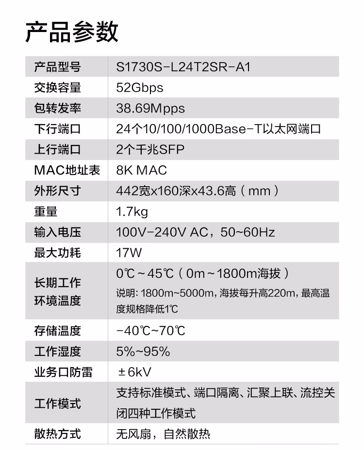 包装清单  :   华为数通智选S1730S-L24T2SR-A1千兆交换机24口千兆电口+2上行光纤口 企业级二层机架式以太网络集线器