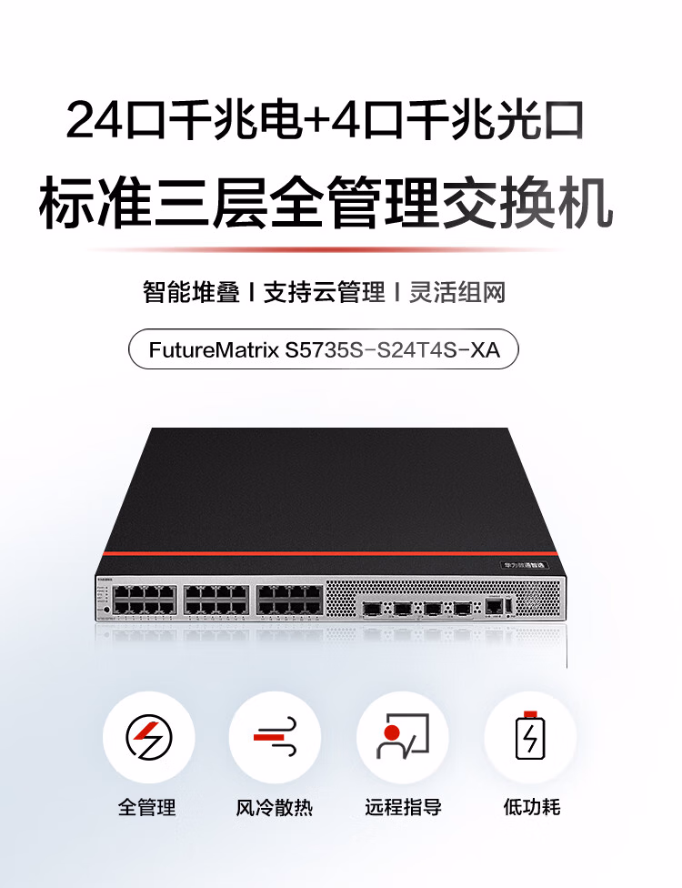 包装清单  :   华为数通智选S5735S-S24T4S-XA千兆三层交换机24口千兆电口+4口千兆光口Vlan网管 替代S5735S-S24T4S-A