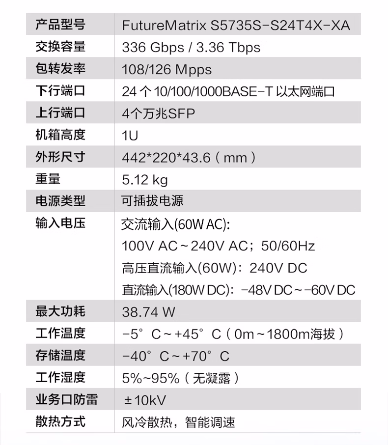 包装清单  :   华为数通智选S5735S-S24T4X-XA三层万兆交换机24口千兆电4口万兆光 双电源可堆叠 替代S5735S-S24T4S-A