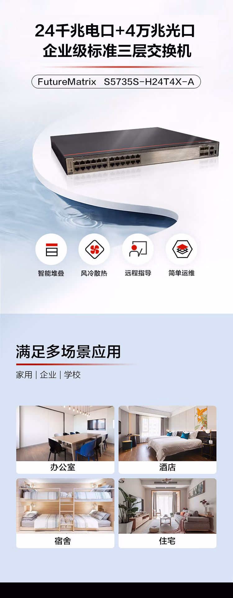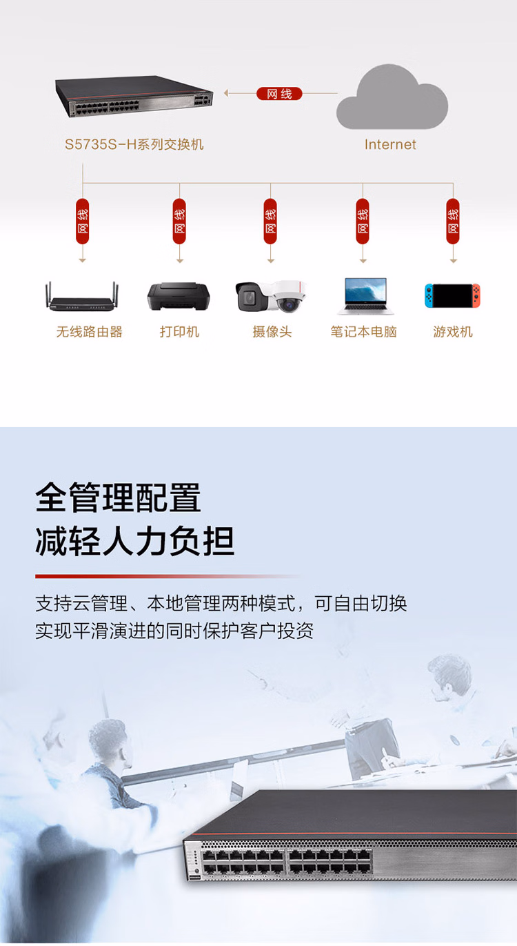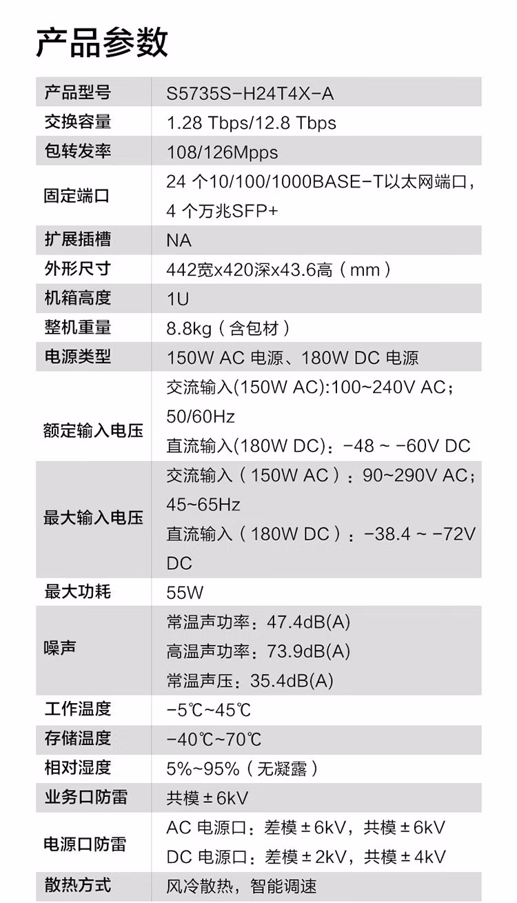 包装清单  :   华为数通智选S5735S-H24T4X-A万兆交换机核心汇聚三层增强款 24口千兆电+4口万兆光可堆叠双电源网管