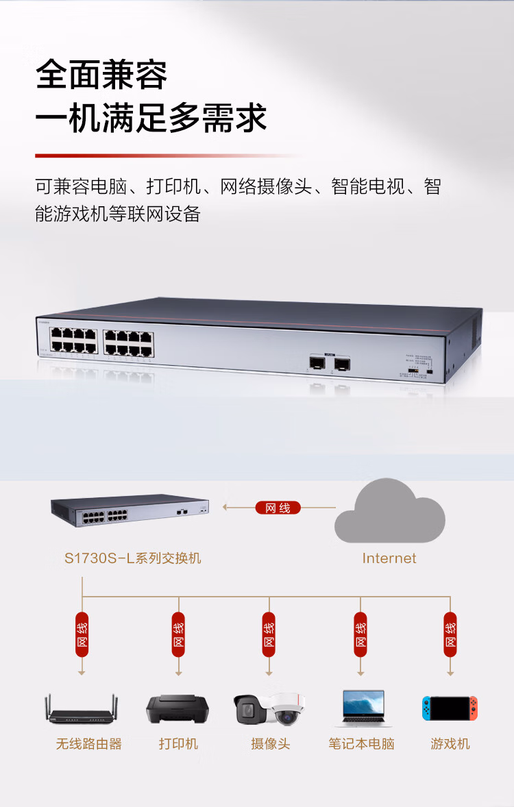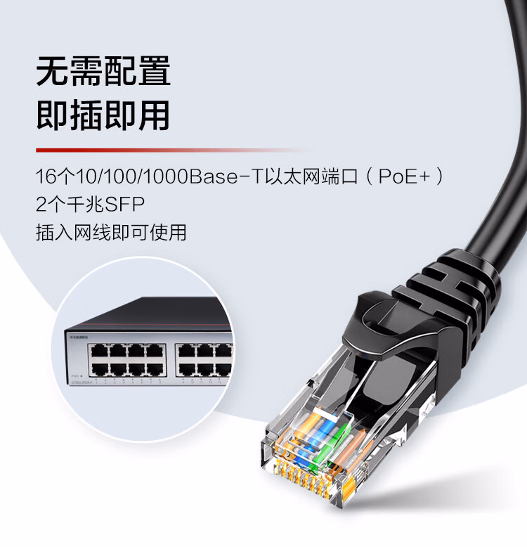 包装清单  :   华为数通智选 交换机千兆16口POE供电监控网络网线分线器交换器分流器2上行光口 S1730S-L16P2SR-A1 满供247W