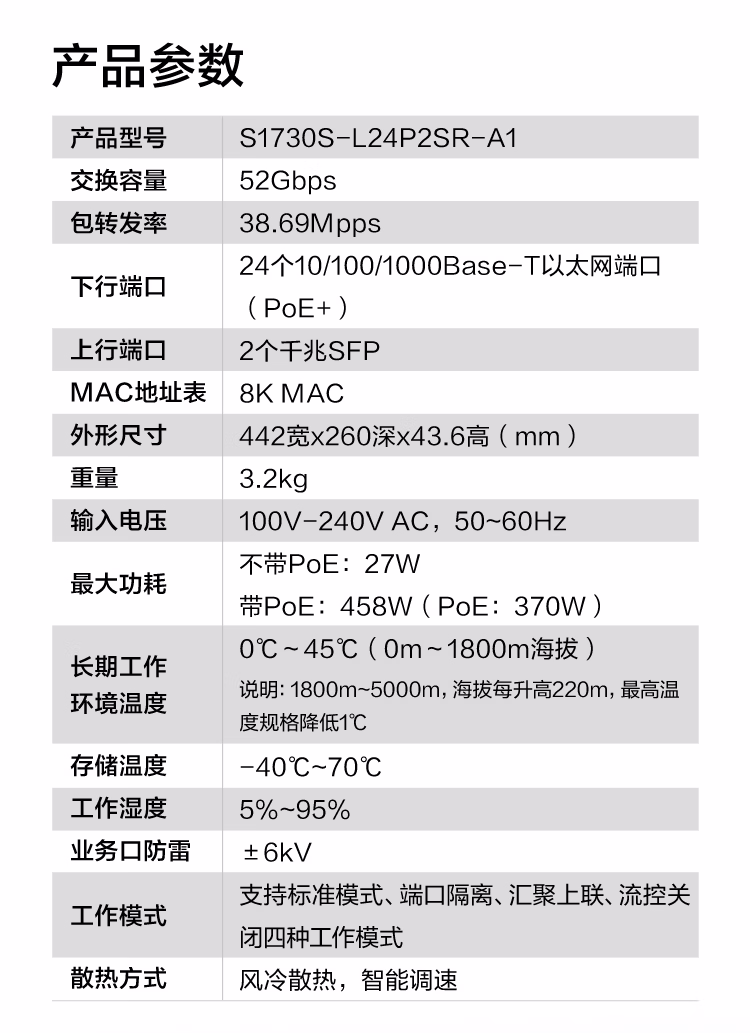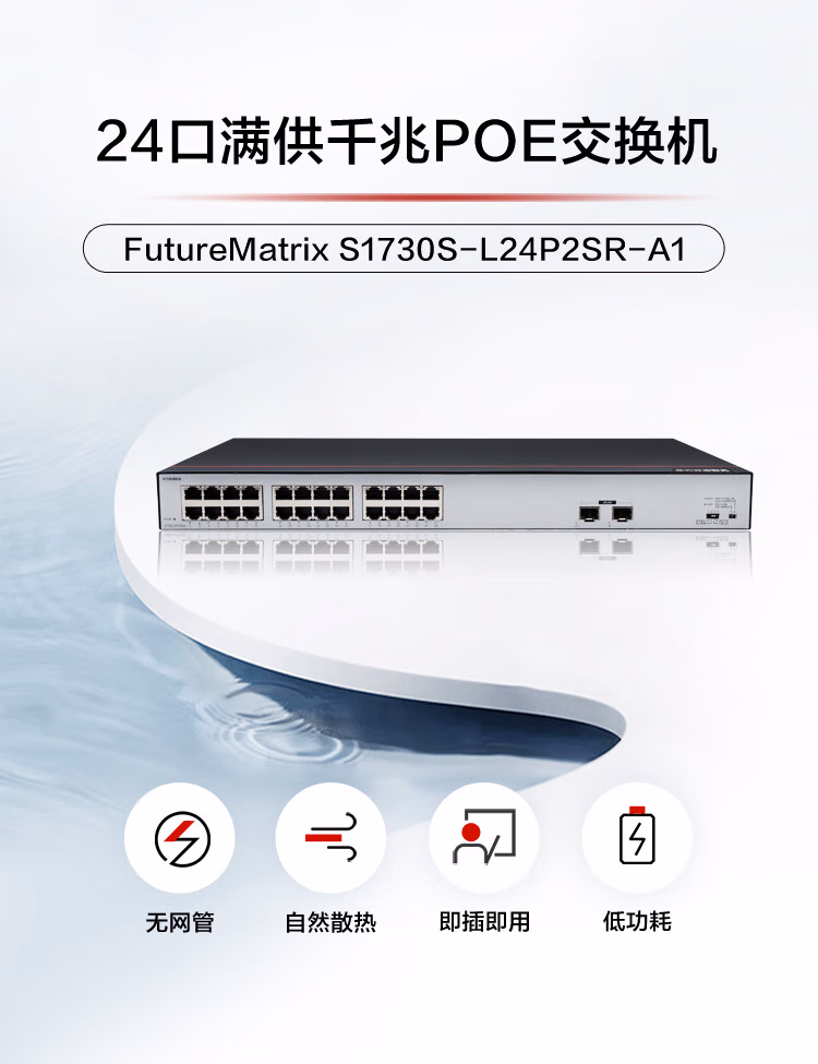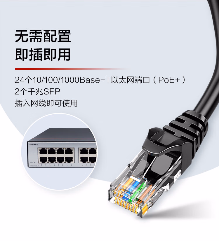 包装清单  :   华为数通智选 交换机千兆24口POE供电监控网络网线分线器交换器分流器2上行光口 S1730S-L24P2SR-A1 满供370W