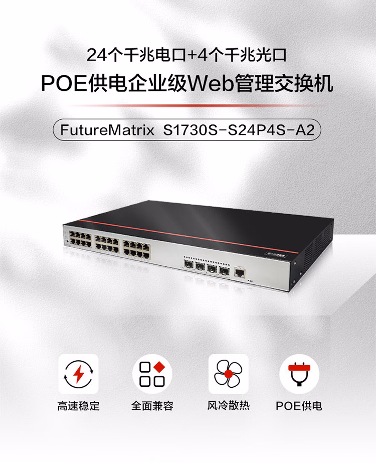包装清单  :   华为数通智选 S1730S-S24P4S-A2 企业级24口千兆二层POE交换机 4个千兆光口 自适应端口网络接入交换机 功率380W
