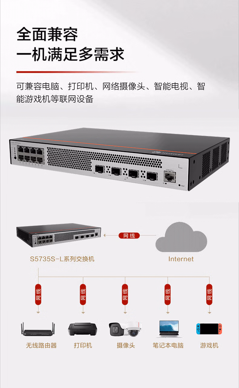 包装清单  :   华为坤灵 S5735S-L8P4S-QA2 交换机8口千兆POE交换机8电口4光口汇聚弱三层Vlan全网管网络网线分线器企业组网