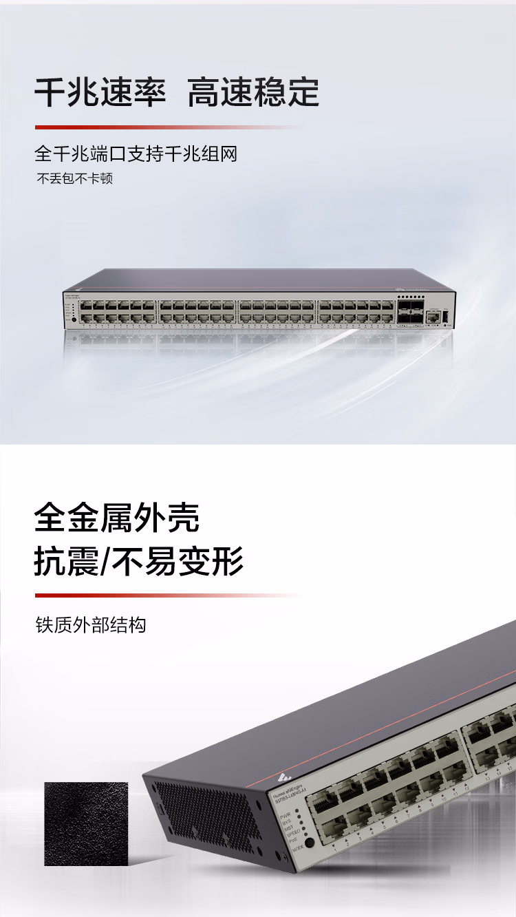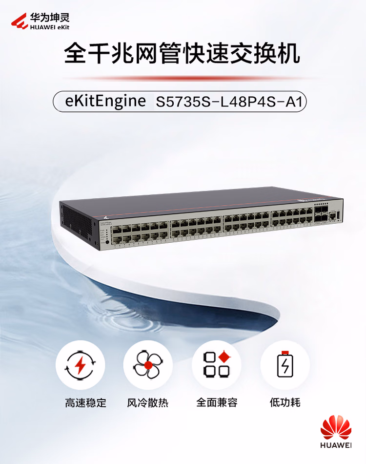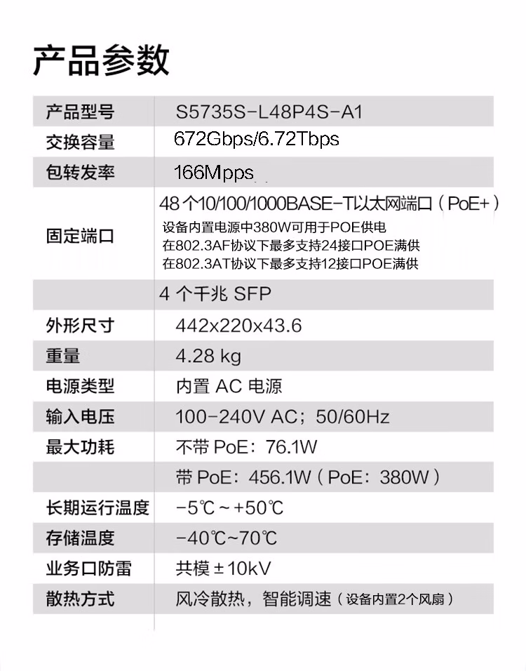 包装清单  :   华为坤灵 S5735S-L48P4S-A1 千兆交换机48口千兆电4口千兆光企业级POE供电以太网络全管理弱三层汇聚组网