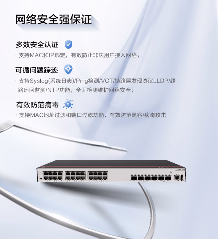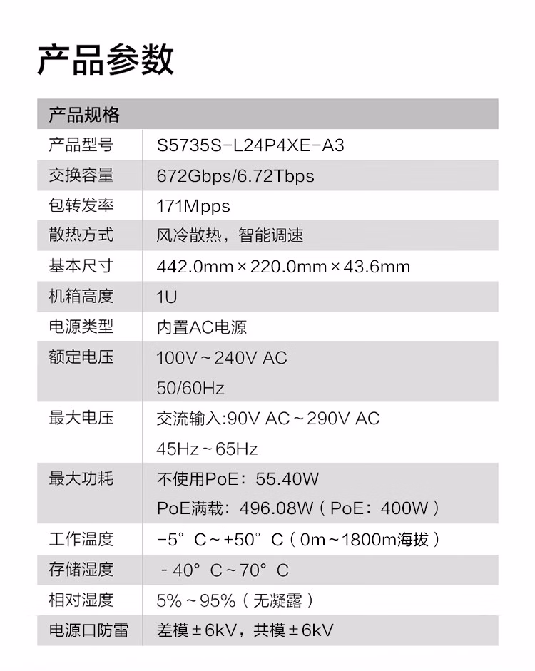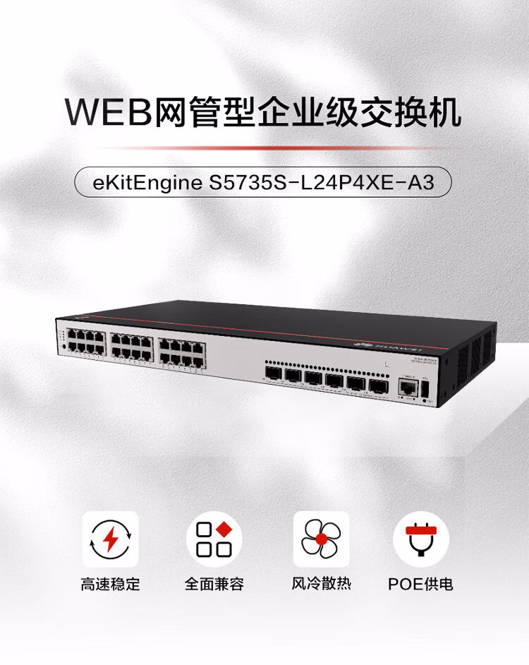 包装清单  :   华为坤灵 S5735S-L24P4XE-A3 企业级24口千兆网管POE交换机4个万兆光2万兆堆叠口 国产化支持VLAN环网 功率400W