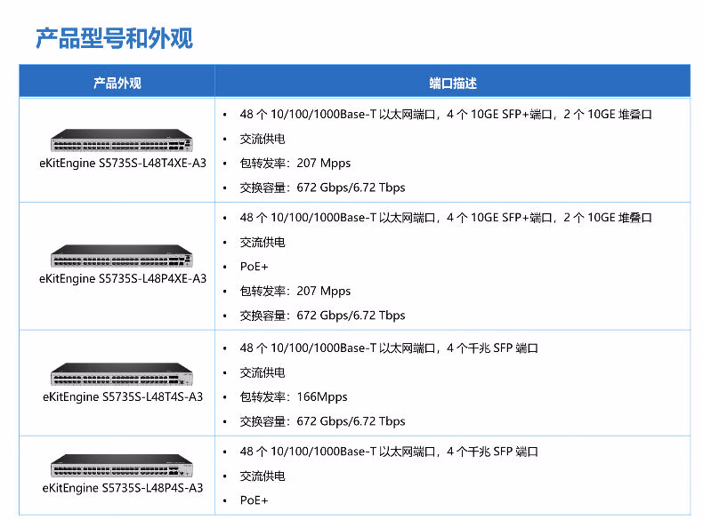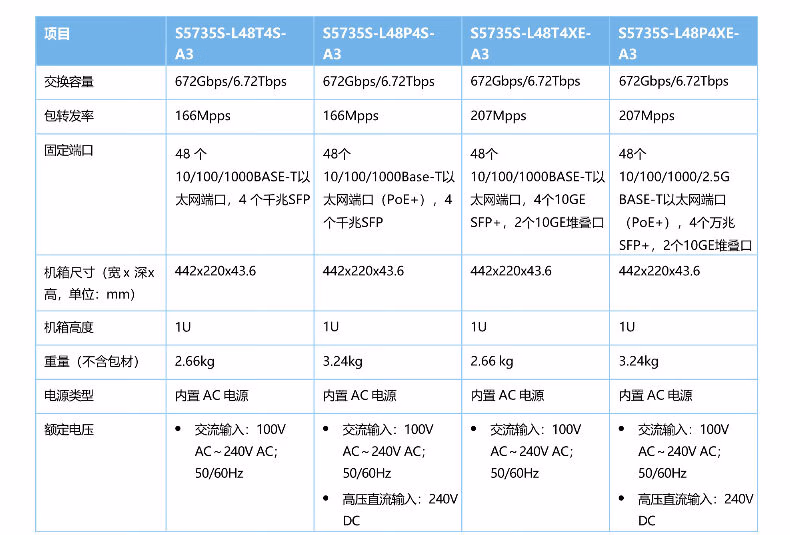 包装清单  :   华为坤灵 S5735S-L48P4XE-A3 企业级48口千兆三层网管汇聚POE供电交换机 4个万兆光口 2万兆堆叠口 功率380W