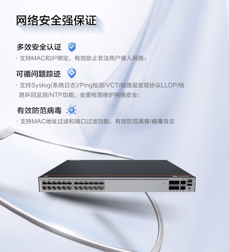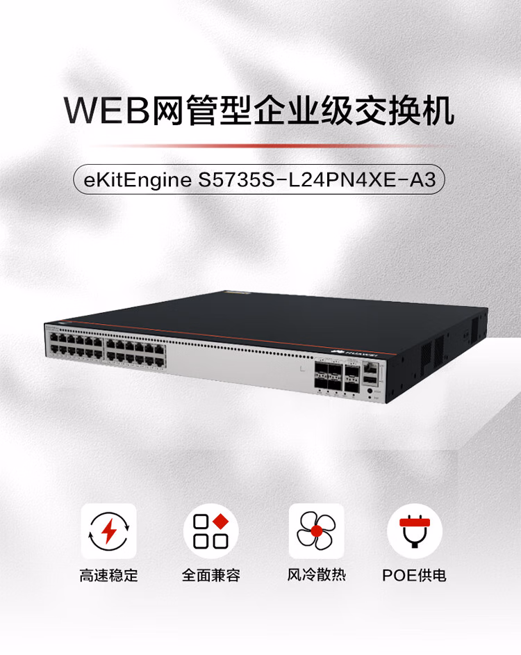 包装清单  :   华为坤灵 企业园区24个2.5G电口POE交换机 4万兆光口S5735S-L24PN4XE-A3 万兆堆叠口国产化交换器 功率400W