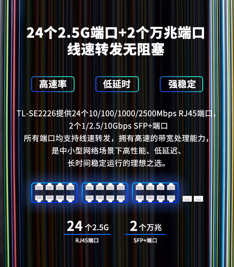 包装清单  :   普联(TP-LINK)24口2.5G+2万兆SFP+云管理交换机 二层网管 支持端口监控、线缆检测、环回保护TL-SE2226