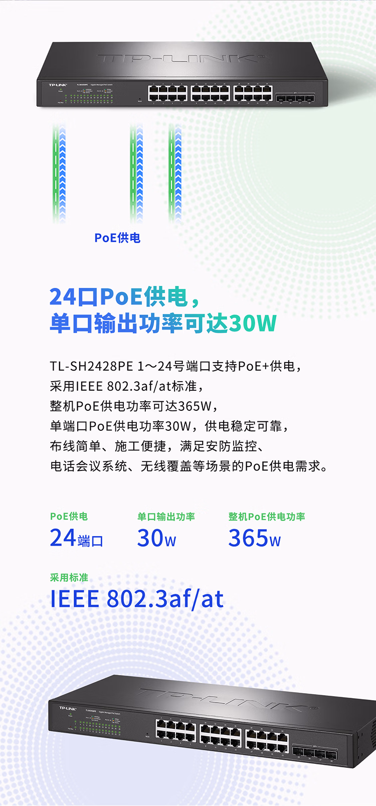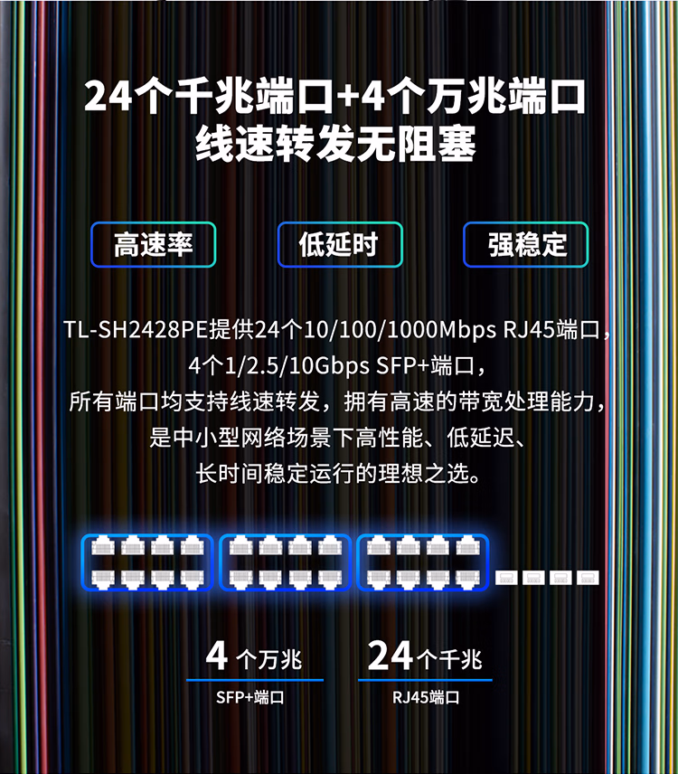包装清单  :   普联(TP-LINK)24口千兆poe+4万兆SFP+口万兆上联交换机 二层WEB网管企业级整机最大供电365W TL-SH2428PE