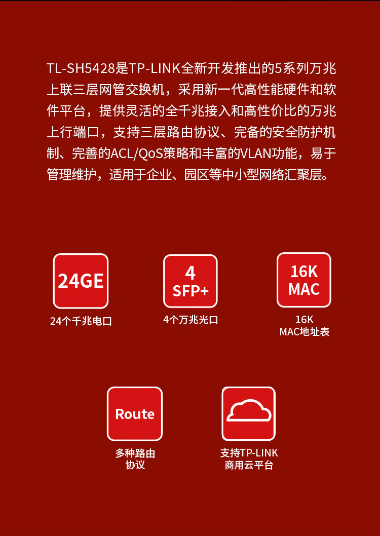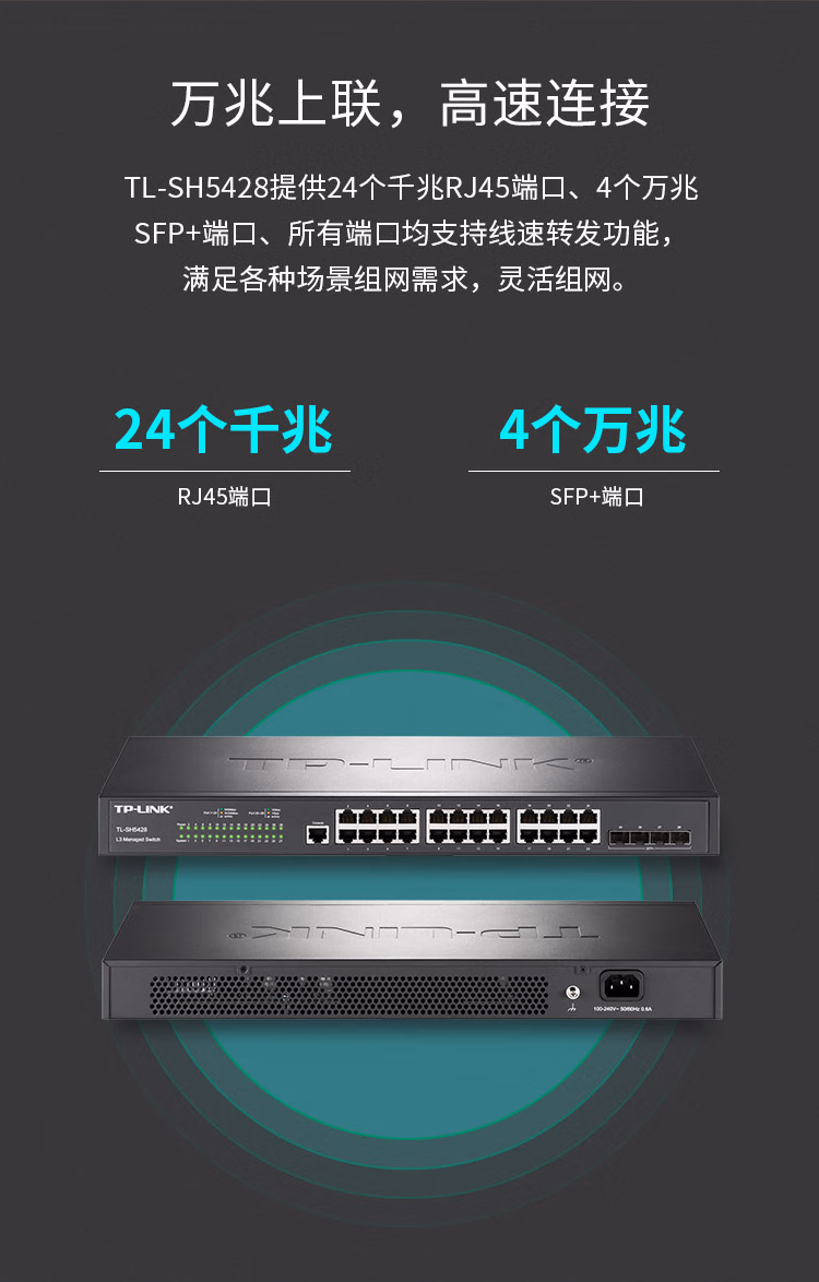 包装清单  :   普联(TP-LINK)万兆SFP+24口千兆三层网管交换机 支持堆叠 安全防护 多种路由协议 TL-SH5428