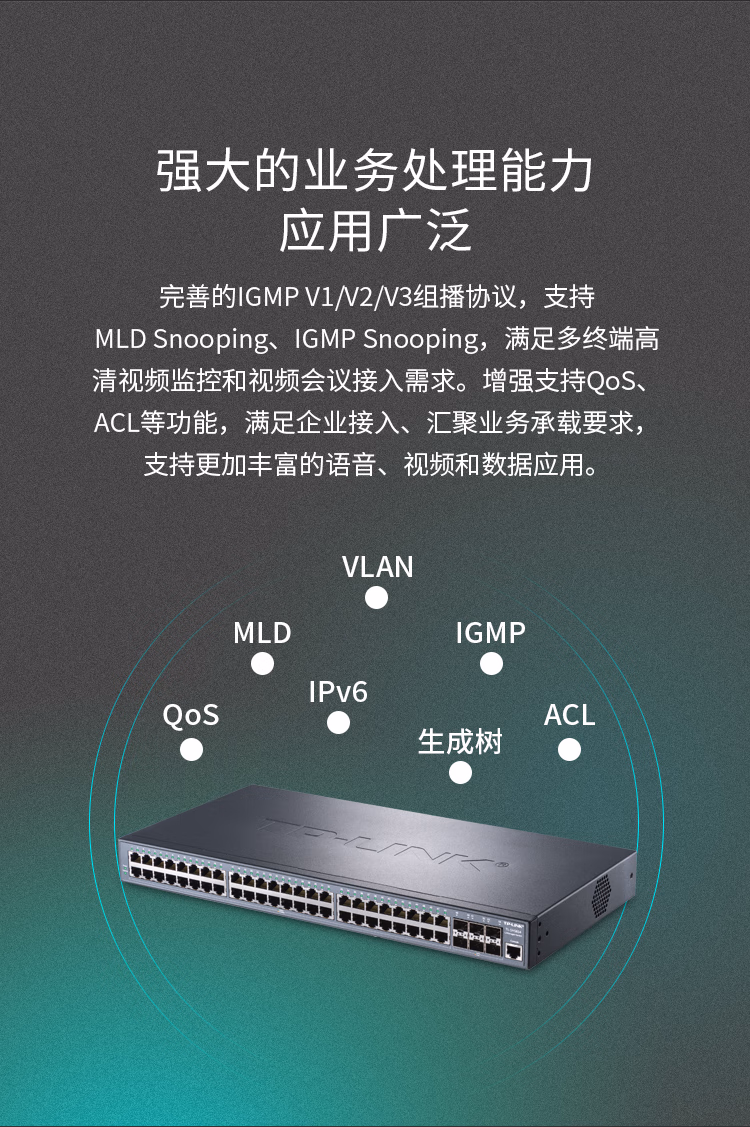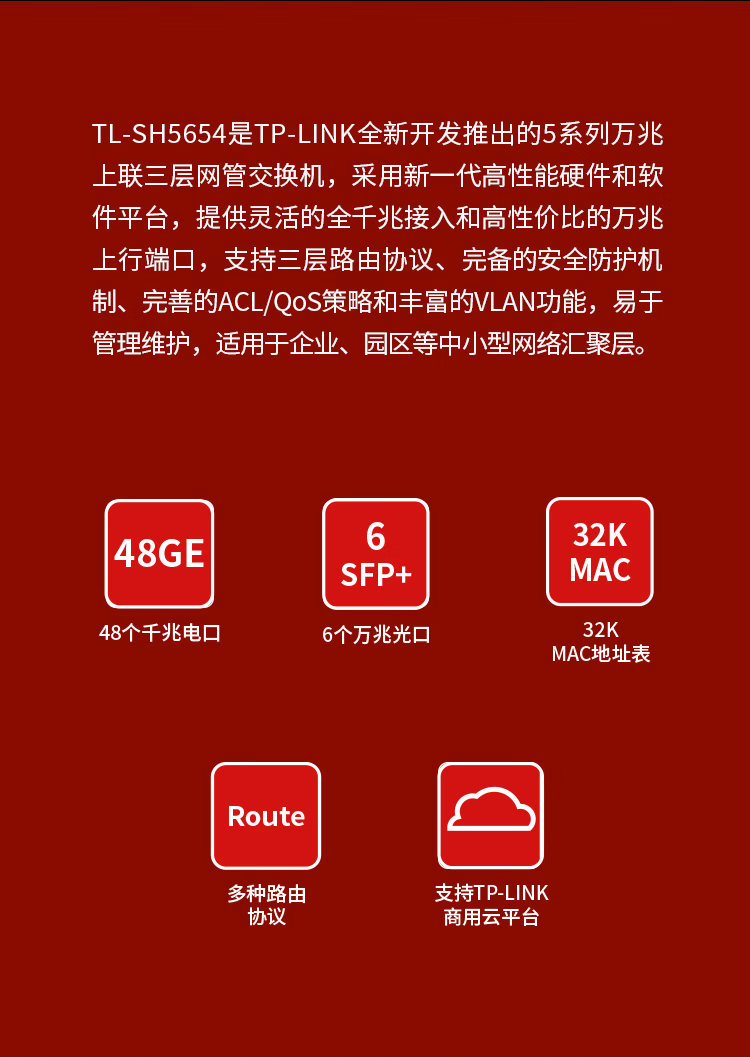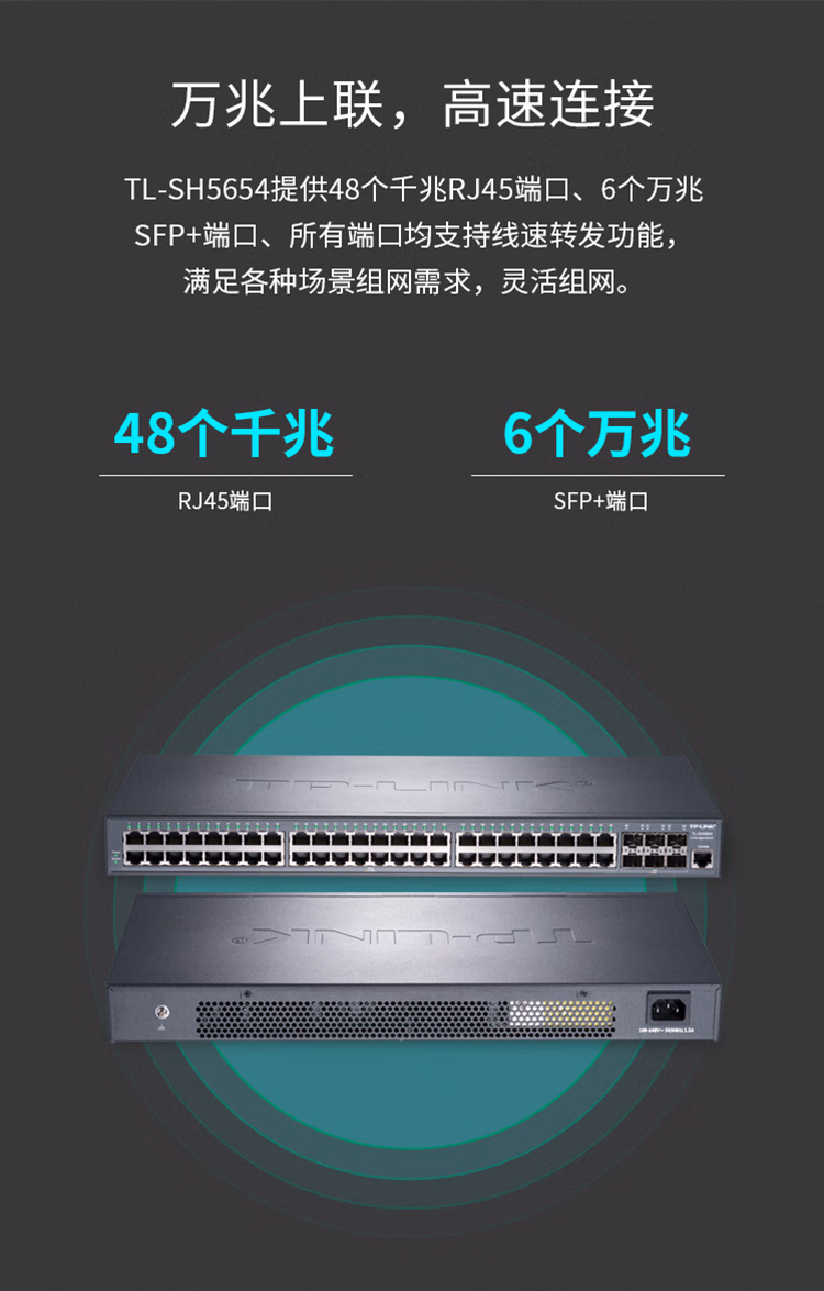 包装清单  :   普联(TP-LINK)48口千兆+6万兆SFP上联三层网管交换机 支持堆叠 TL-SH5654