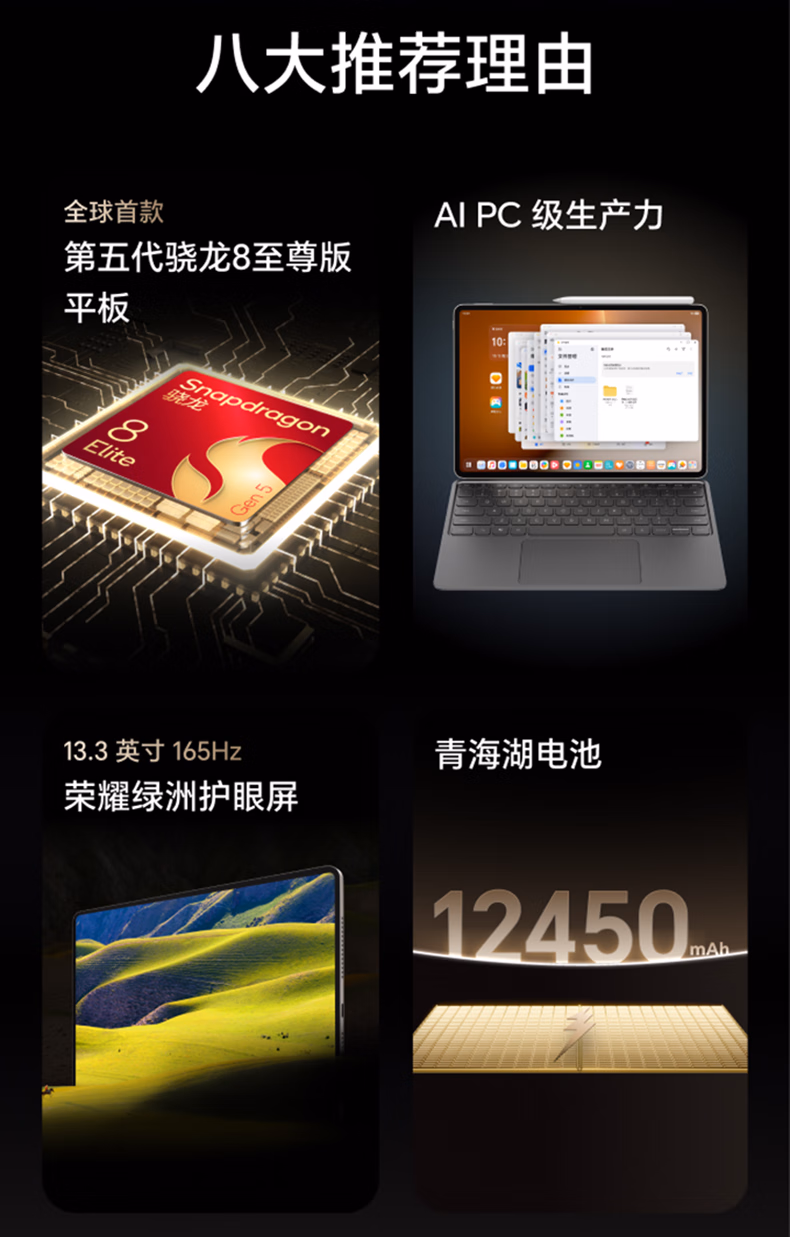 包装清单  :   荣耀MagicPad3 Pro 13.3英寸平板电脑 第五代骁龙8至尊版芯片 高刷护眼屏 月影白12+256GB