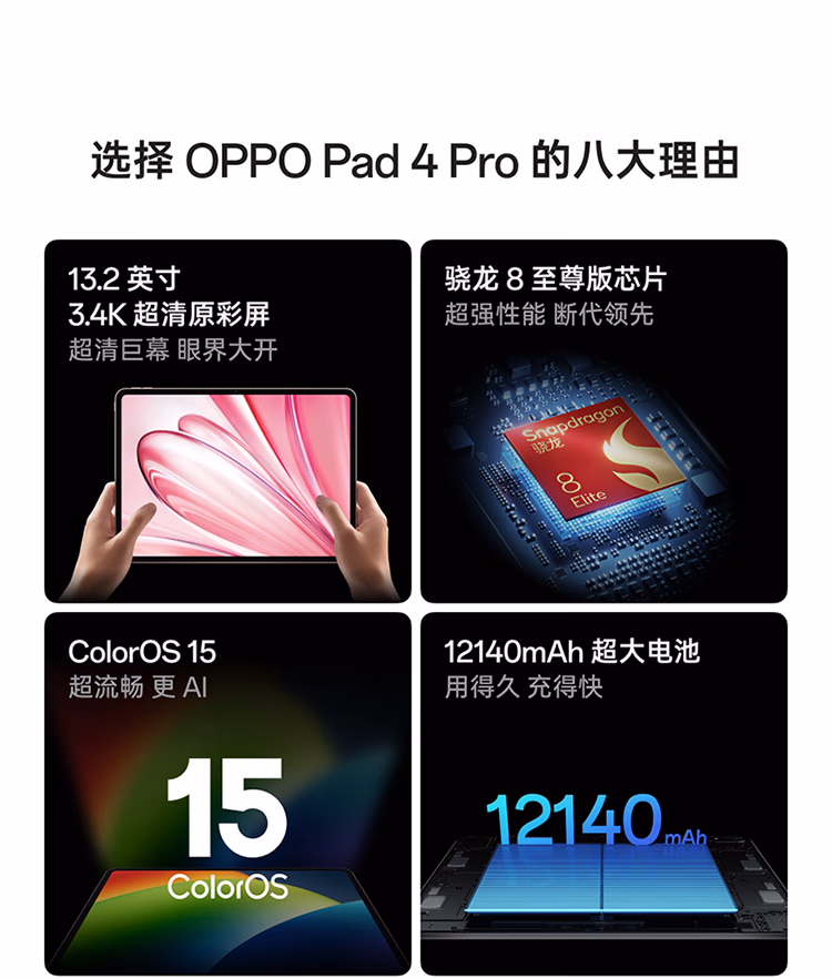 包装清单  :   OPPO Pad 4 Pro 13.2英寸平板电脑 高通骁龙8至尊版芯片 12GB+256GB 深空灰