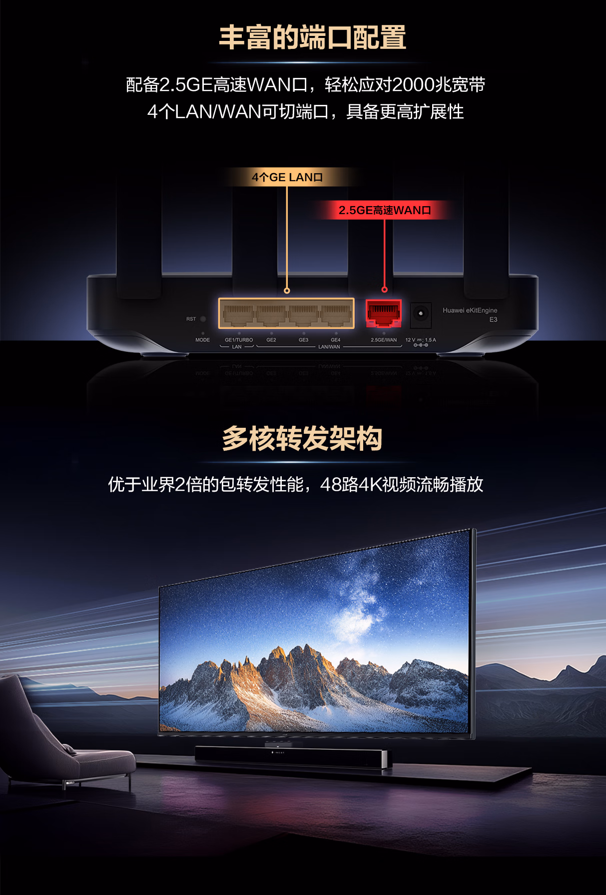 包装清单  :   华为路由器wifi7家用BE3600无线千兆信号增强eKitEngine E3企业级路由2.5g网口一键mesh专用加速