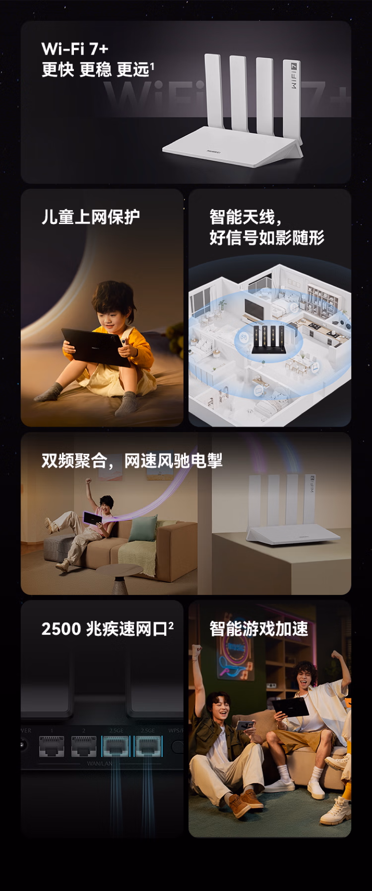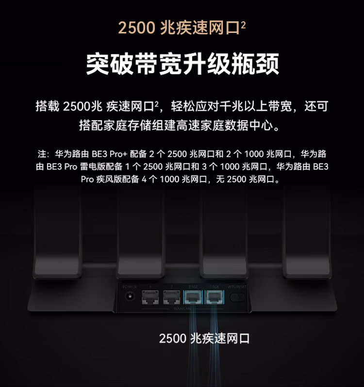 包装清单  :   华为路由 BE3 Pro+ 【Mate 80适配】WiFi 7+ 双2.5G网口 智能高增益天线 千兆路由器 无线家用路由器