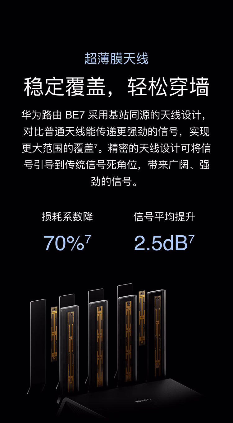 包装清单  :   华为路由BE7 Wi-Fi 7 6500兆级 超薄膜天线 双2.5GE网口 千兆路由器 家用路由器