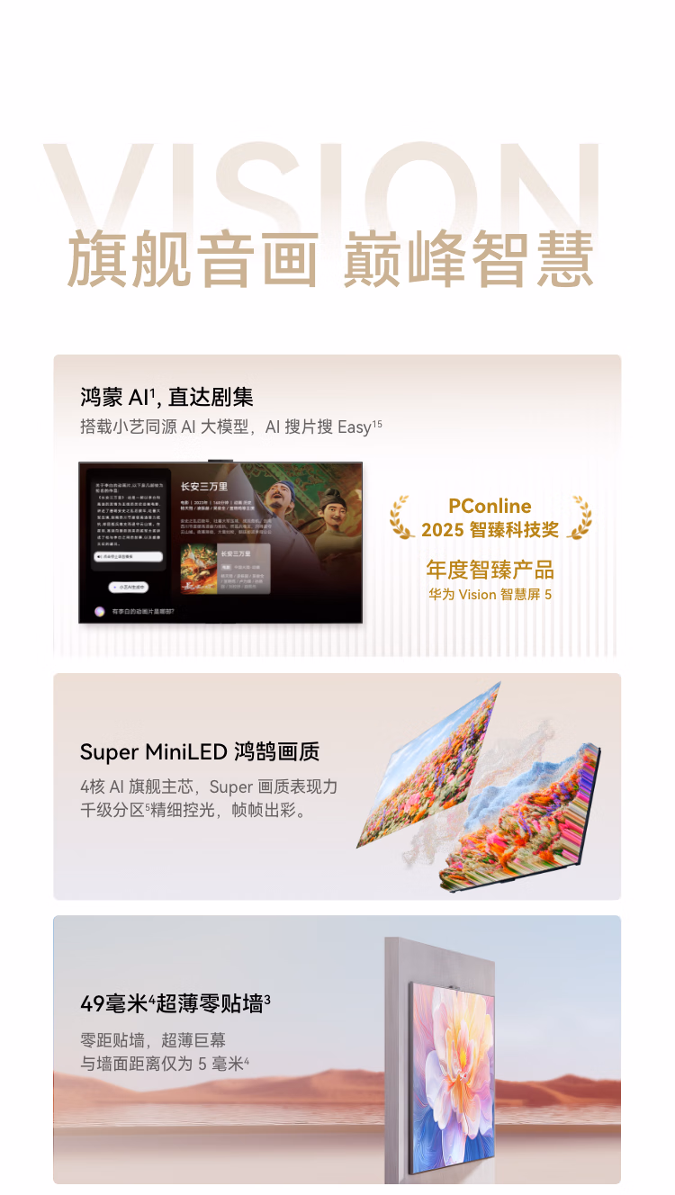 包装清单  :   华为Vision智慧屏 5 75英寸 鸿蒙AI搜片 MiniLED 一级能效投屏超薄液晶高清平板电视机HD7XAJMN
