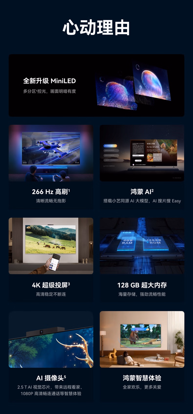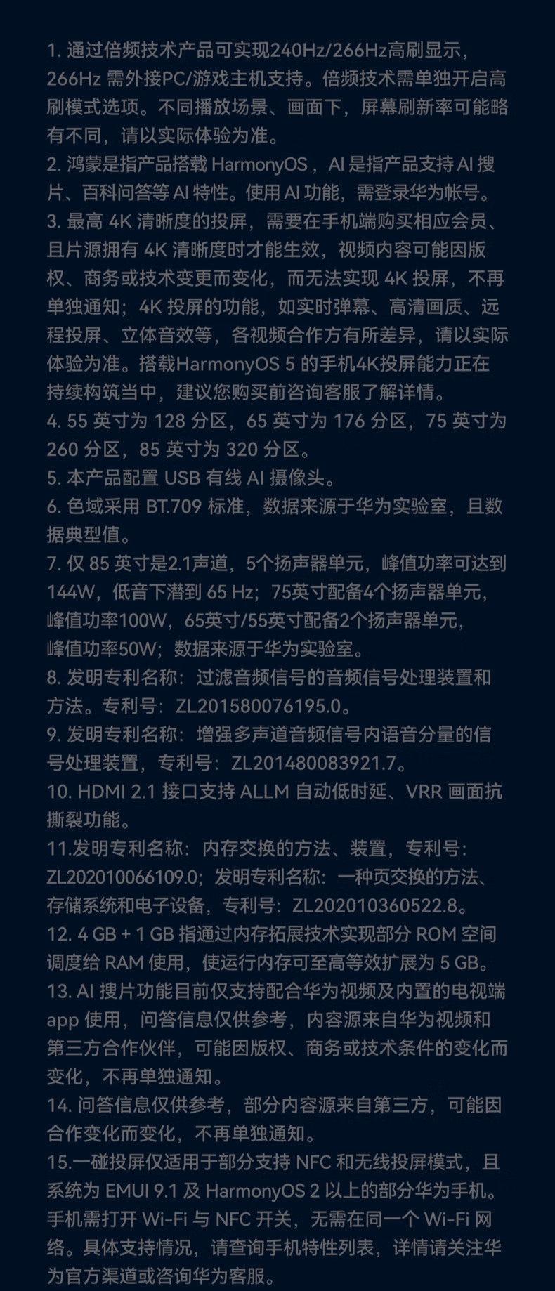 包装清单  :   华为智慧屏 S6 65英寸 固定挂架送装一体 266Hz MiniLED鸿鹄画质 液晶高清智能平板电视机