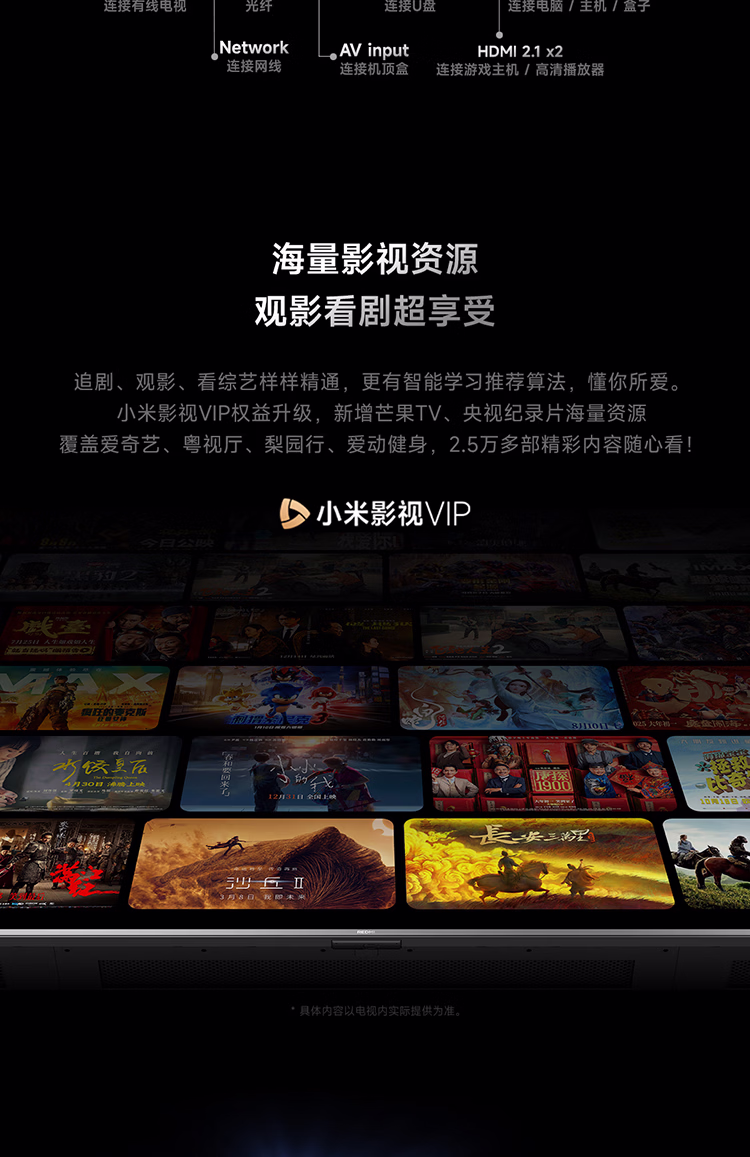 包装清单  :   小米(MI)REDMI电视 X 2026款 65英寸 Mini LED 平板电视L65RC-R