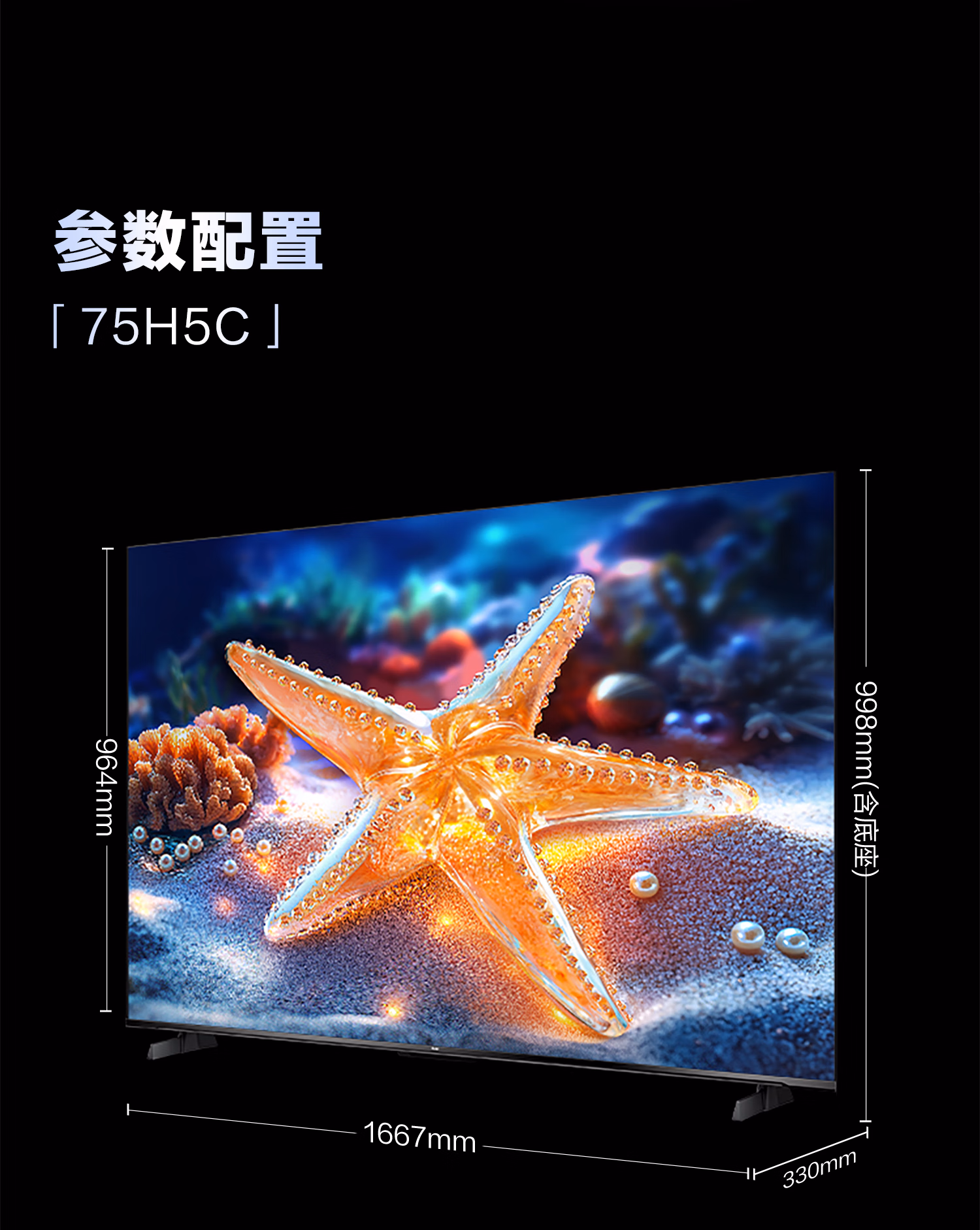 包装清单  :   海尔(Haier)电视 75H5C 75英寸4K超高清144Hz高刷高色域3+64GB游戏一级能效