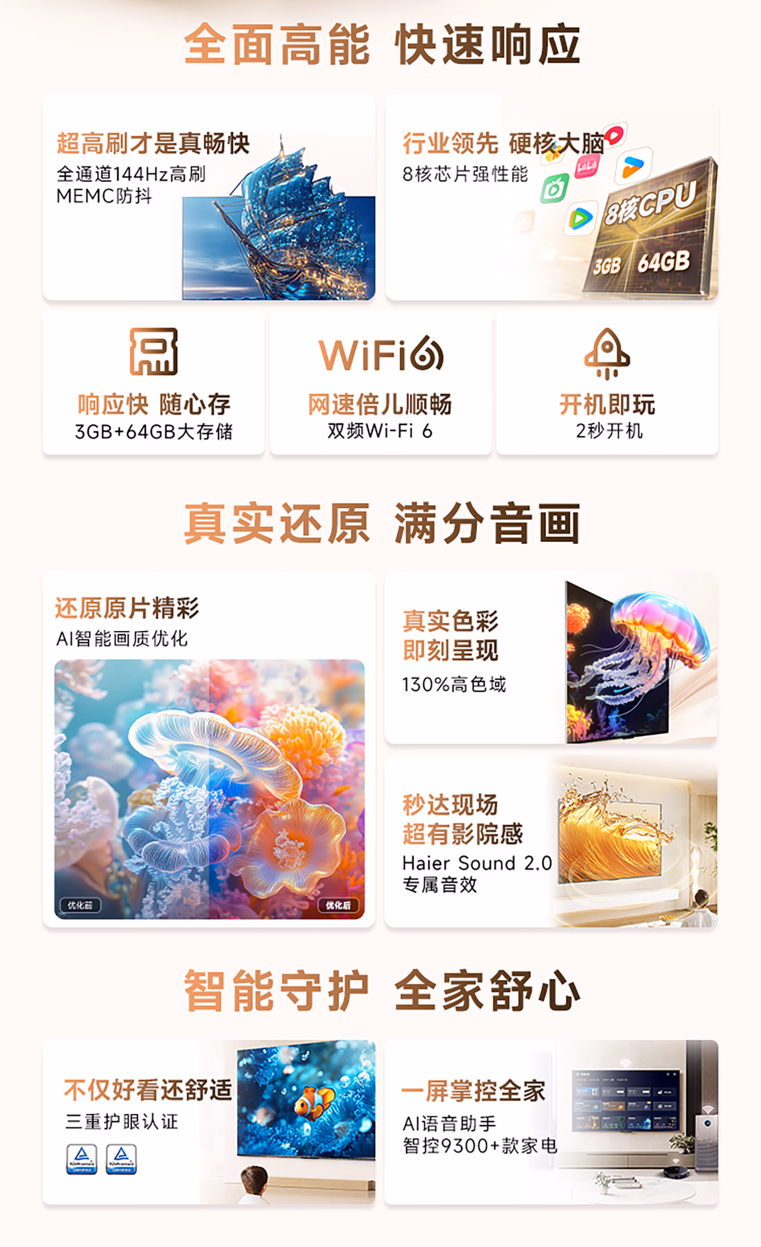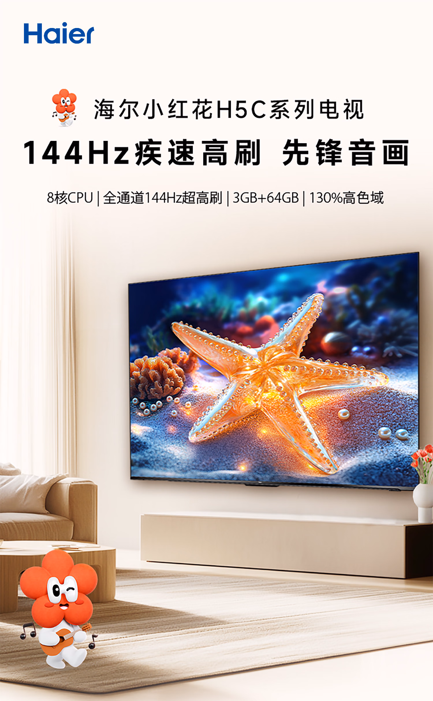 包装清单  :   海尔(Haier)电视 65H5C 65英寸4K超高清高刷高色域3+32GB游戏智能一级能效