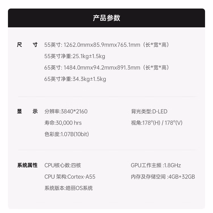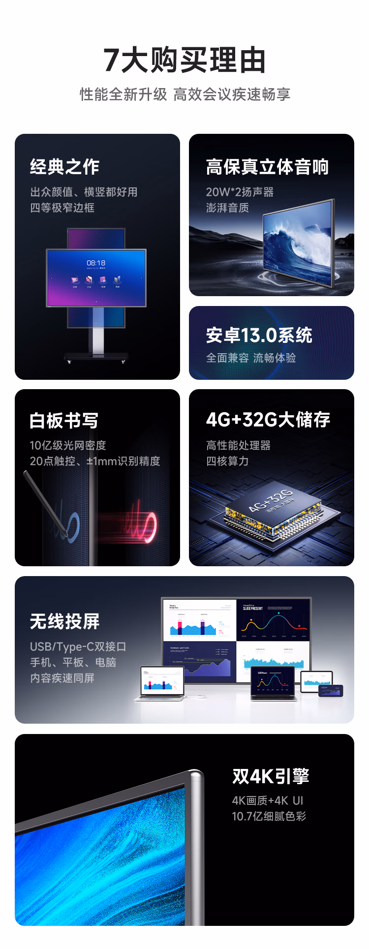 包装清单  :   皓丽65英寸会议平板一体机 会议平板触摸屏一体机 多媒体教学一体机 投影会议一体机触摸大屏E65四件套