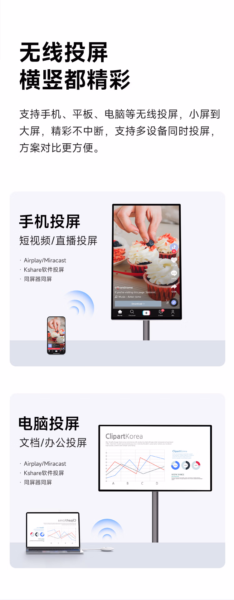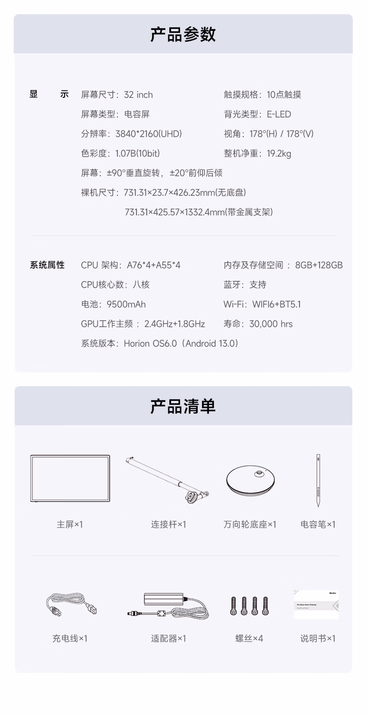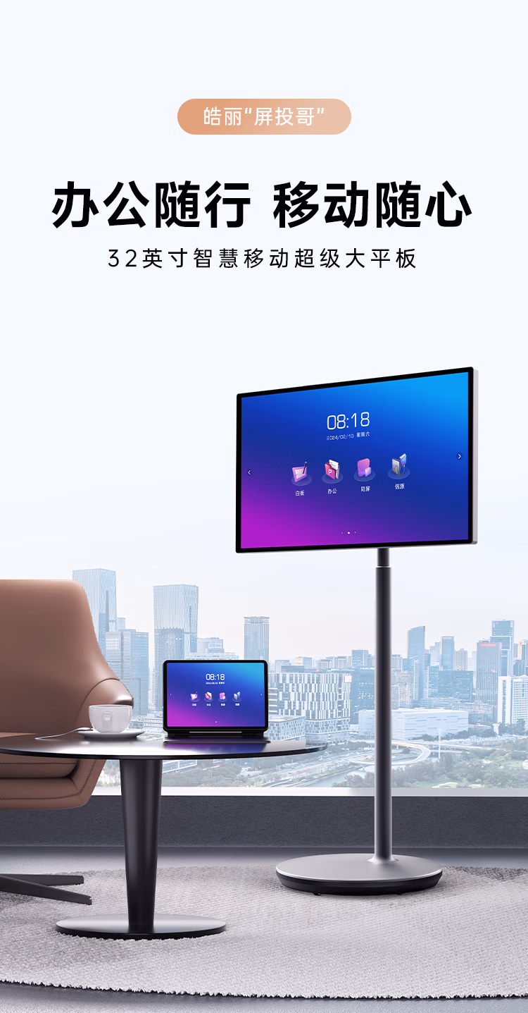 包装清单  :   皓丽屏投哥32英寸移动会议平板一体机商用智慧移动屏8+128G触控显示屏4K显示器广告机数字标牌电子白板