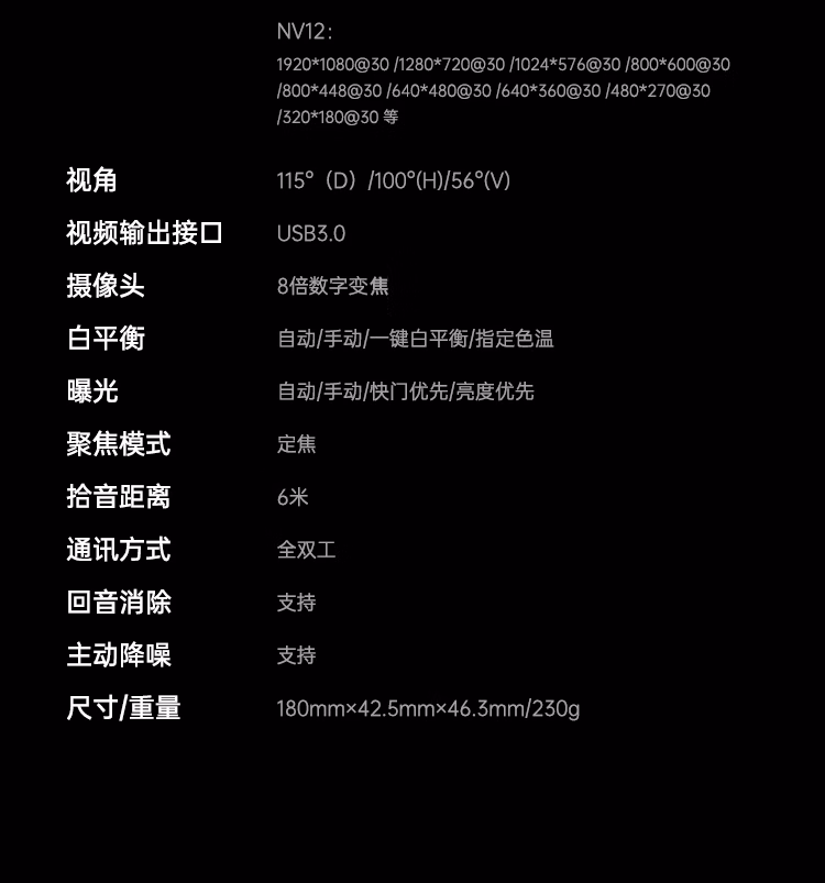 包装清单  :   皓丽视频会议摄像头 会议室摄像头 麦克风一体 4K超清数字变焦 会议专用 智能取景 视频会议设备 HC-5M