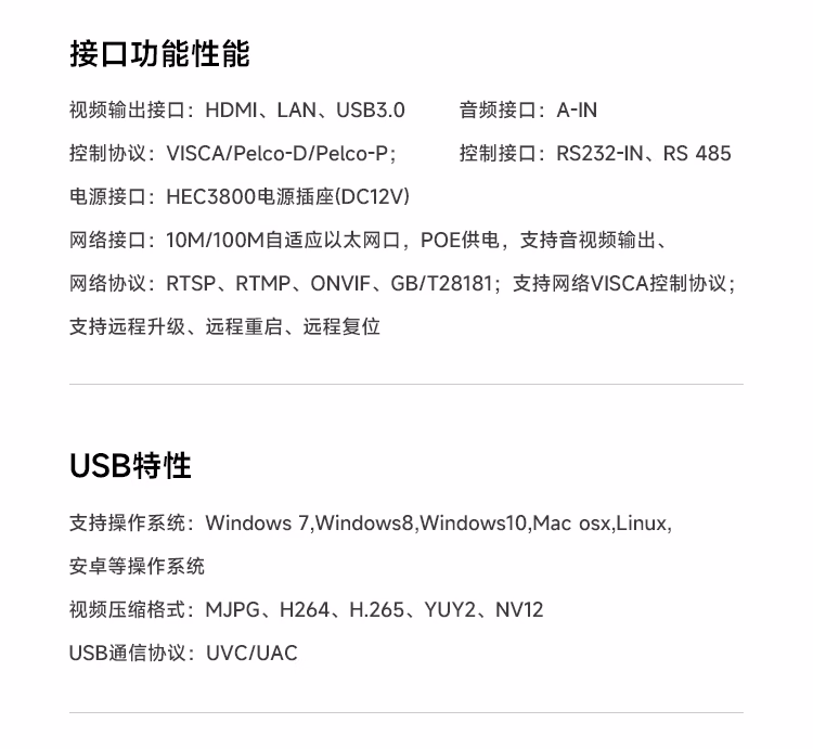 包装清单  :   皓丽视频会议摄像头20倍光学变焦4K超高清云台可旋转远程教学录播/多接口/音视频解决方案 HC-5TK20