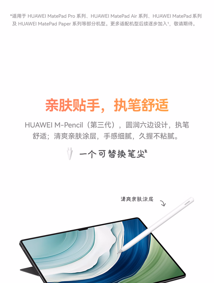 包装清单  :   HUAWEI M-Pencil (第三代)平板创作笔 华为手写笔 星闪技术超低时延 雪域白