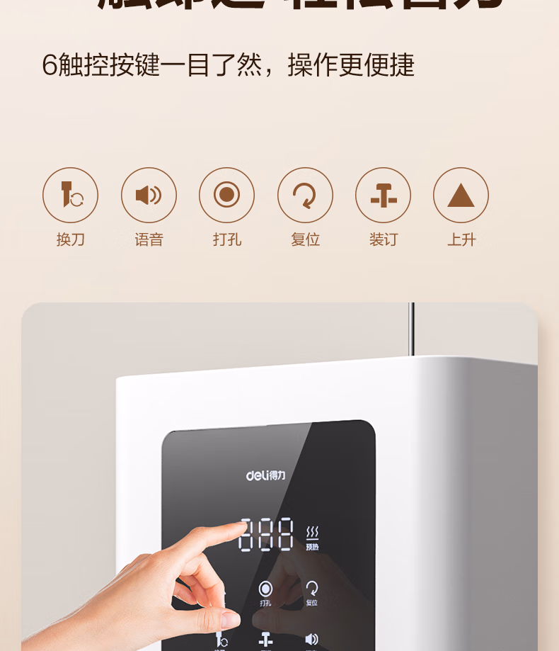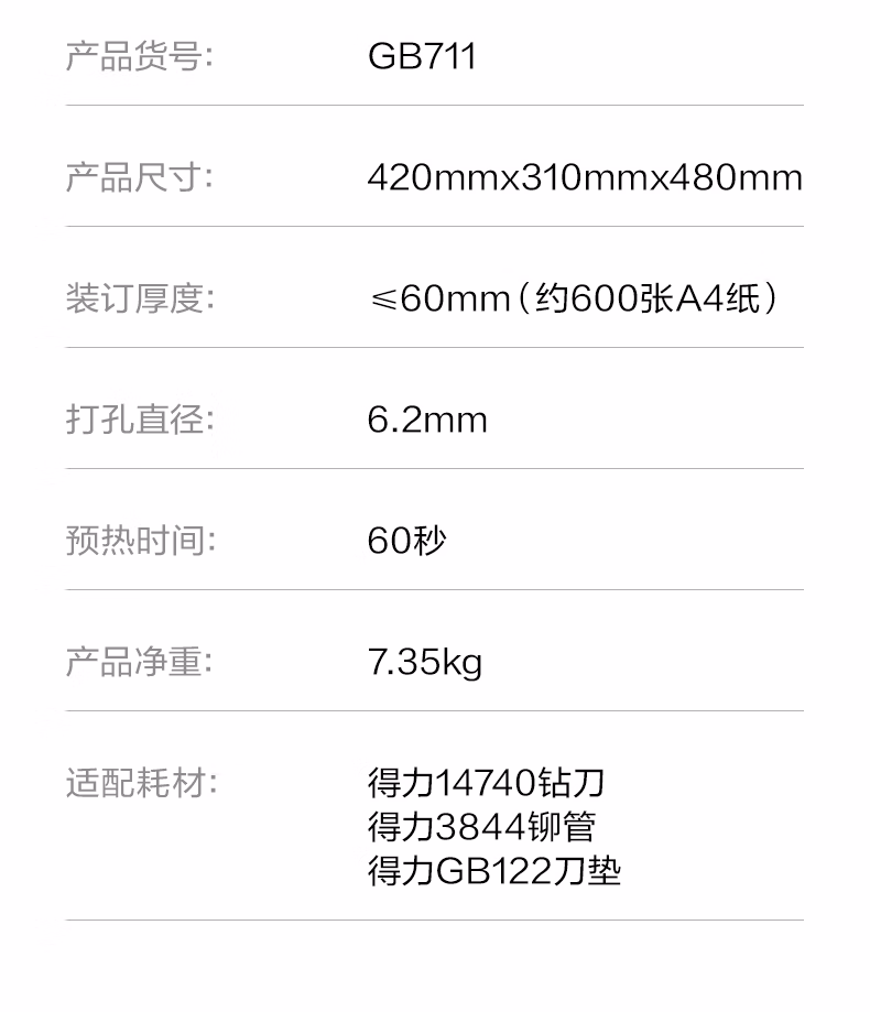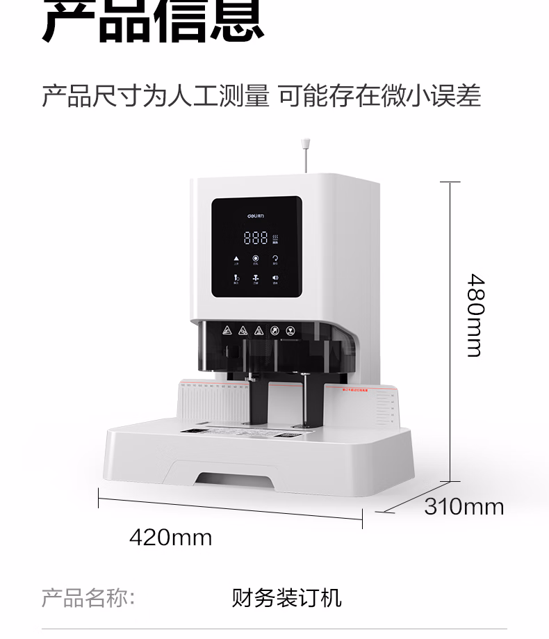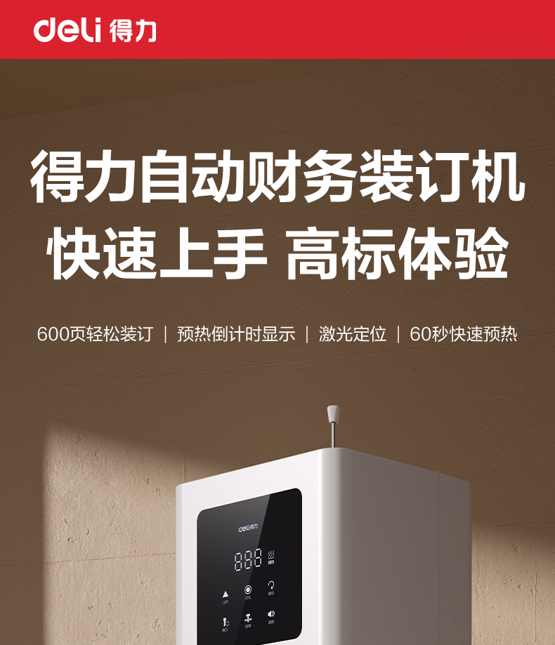 包装清单  :   得力60mm会计凭证自动装订机600页财务装订机电动装订机办公档案铆管热熔装订机文件打孔器升级款GB711
