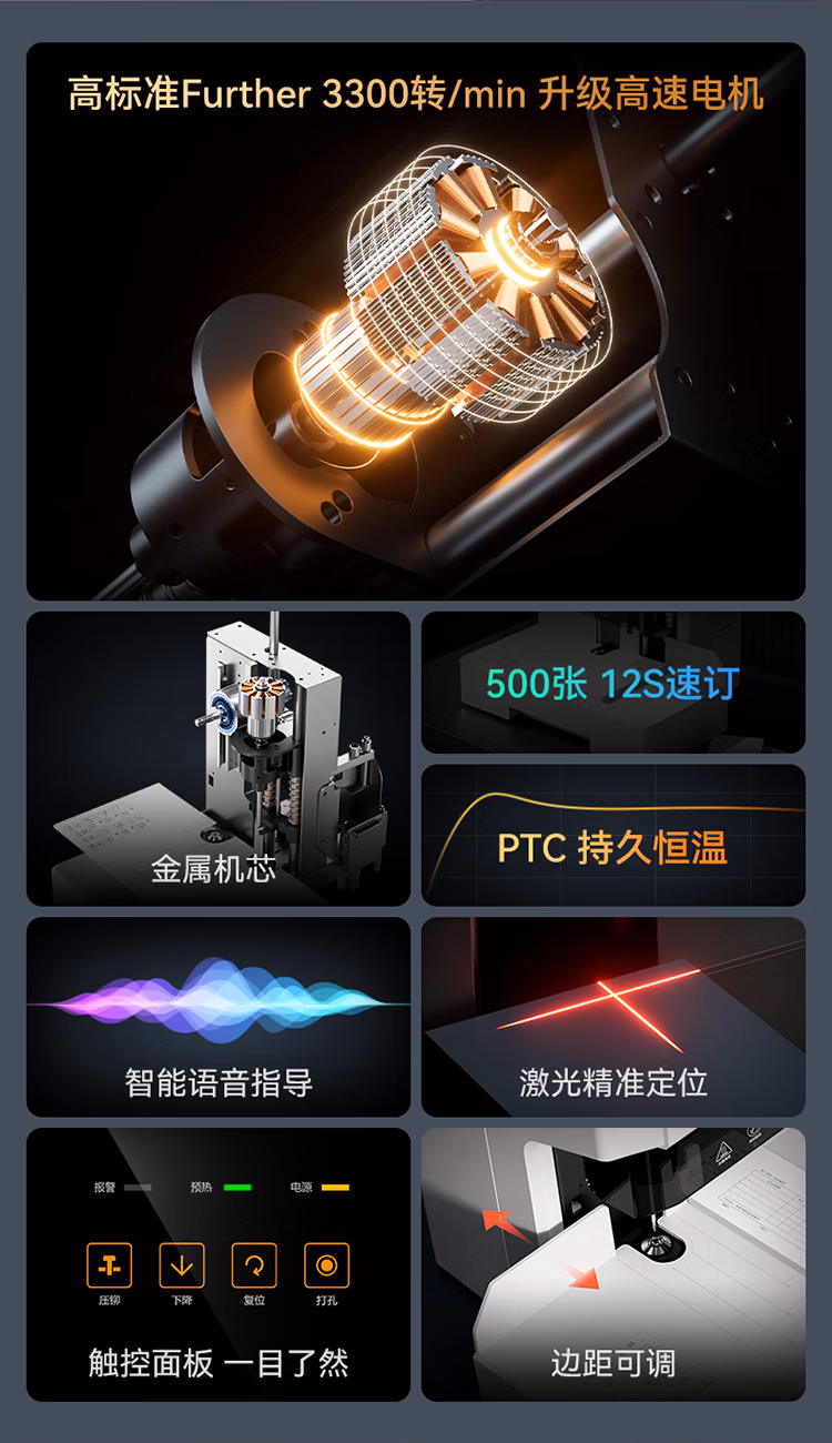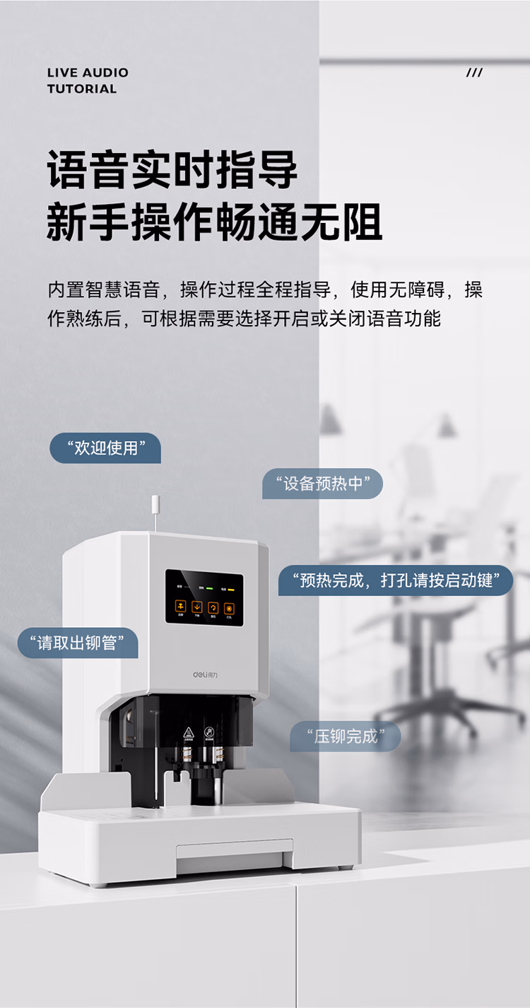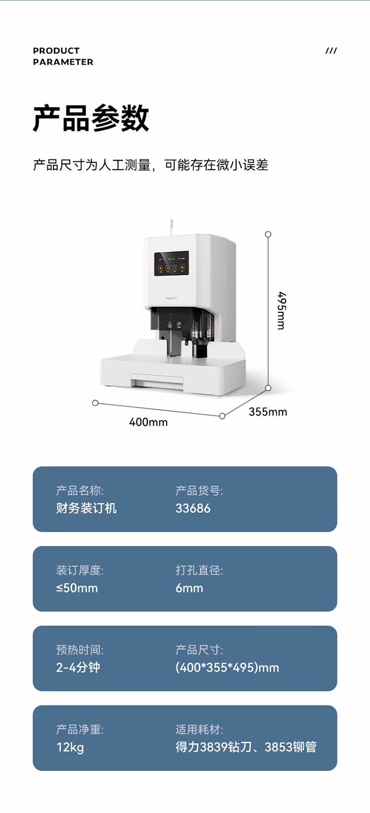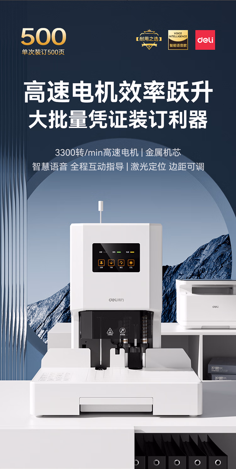 包装清单  :   得力50mm会计凭证自动装订机500页财务装订机电动打孔装订机办公档案铆管热熔装订机文件打孔器33686