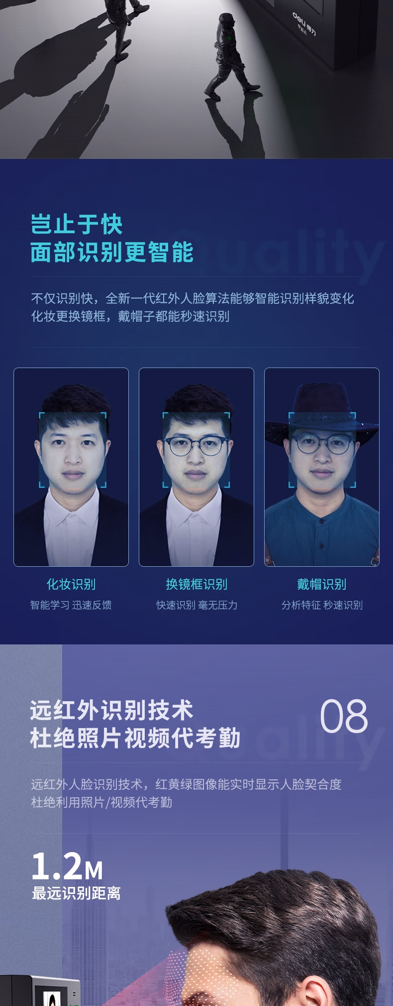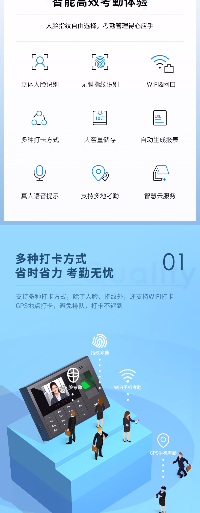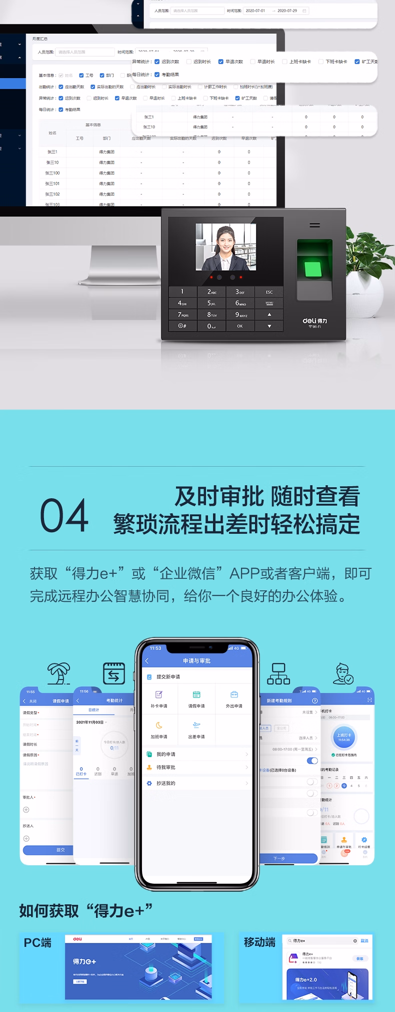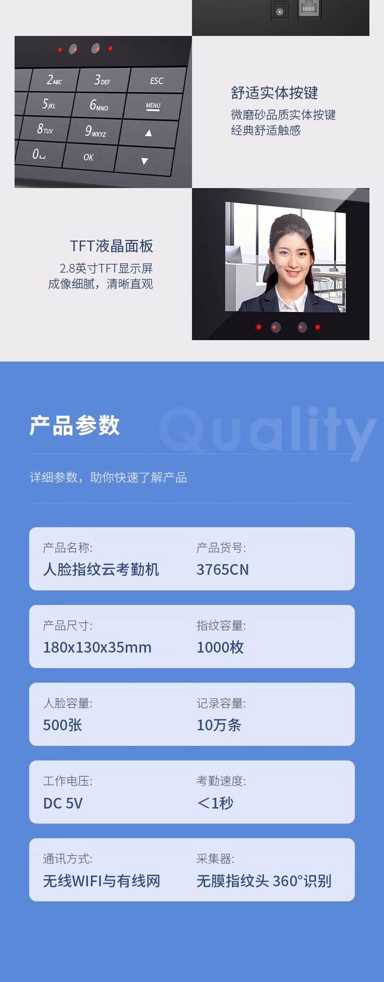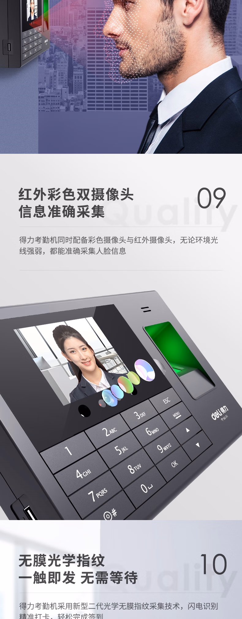 包装清单  :   得力智能云考勤机 打卡机人脸+指纹 快速识别 wifi联网 在线管理考勤 升级网线版3765CN