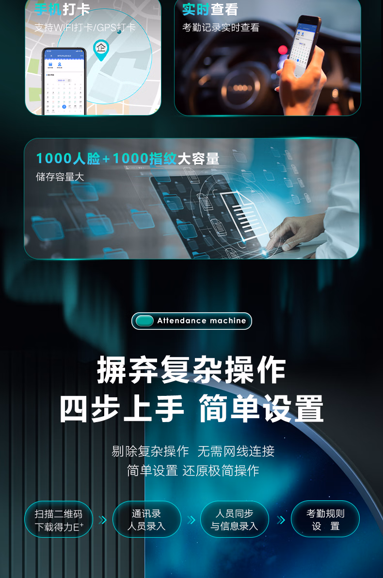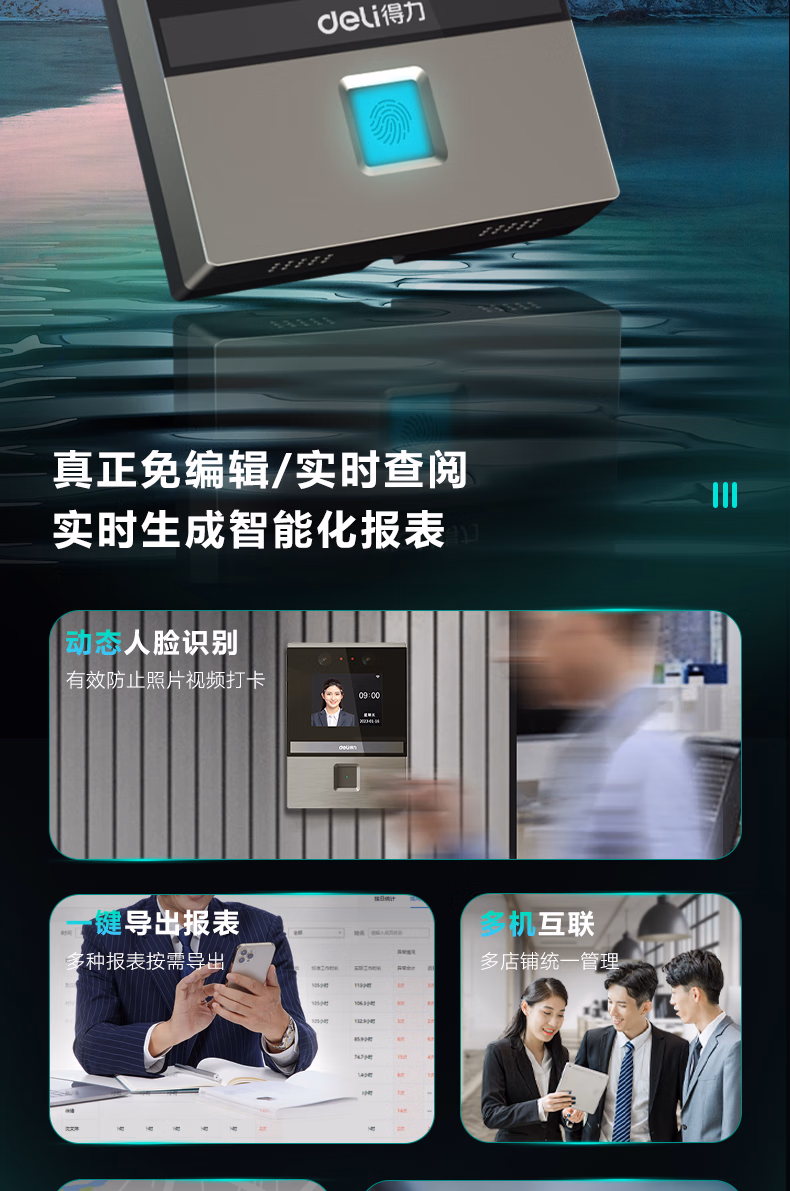 包装清单  :   得力智能云考勤机 人脸+指纹打卡 可见光动态人脸识别 活体检测 wifil联网 远程在线管理DL-D3