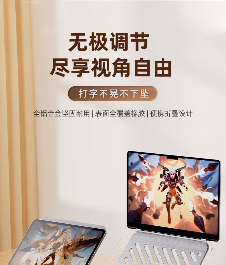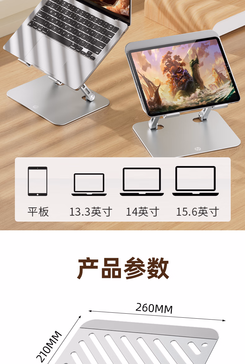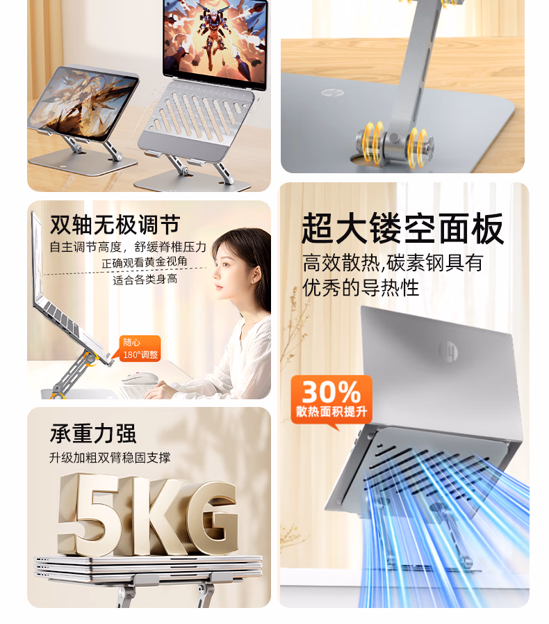 包装清单  :   惠普(HP)Stand A笔记本支架平板双轴调节散热器无极升降便携折叠适用笔记本平板游戏本悬空立式