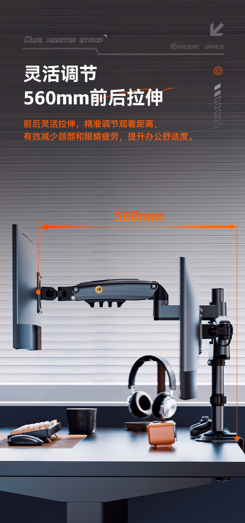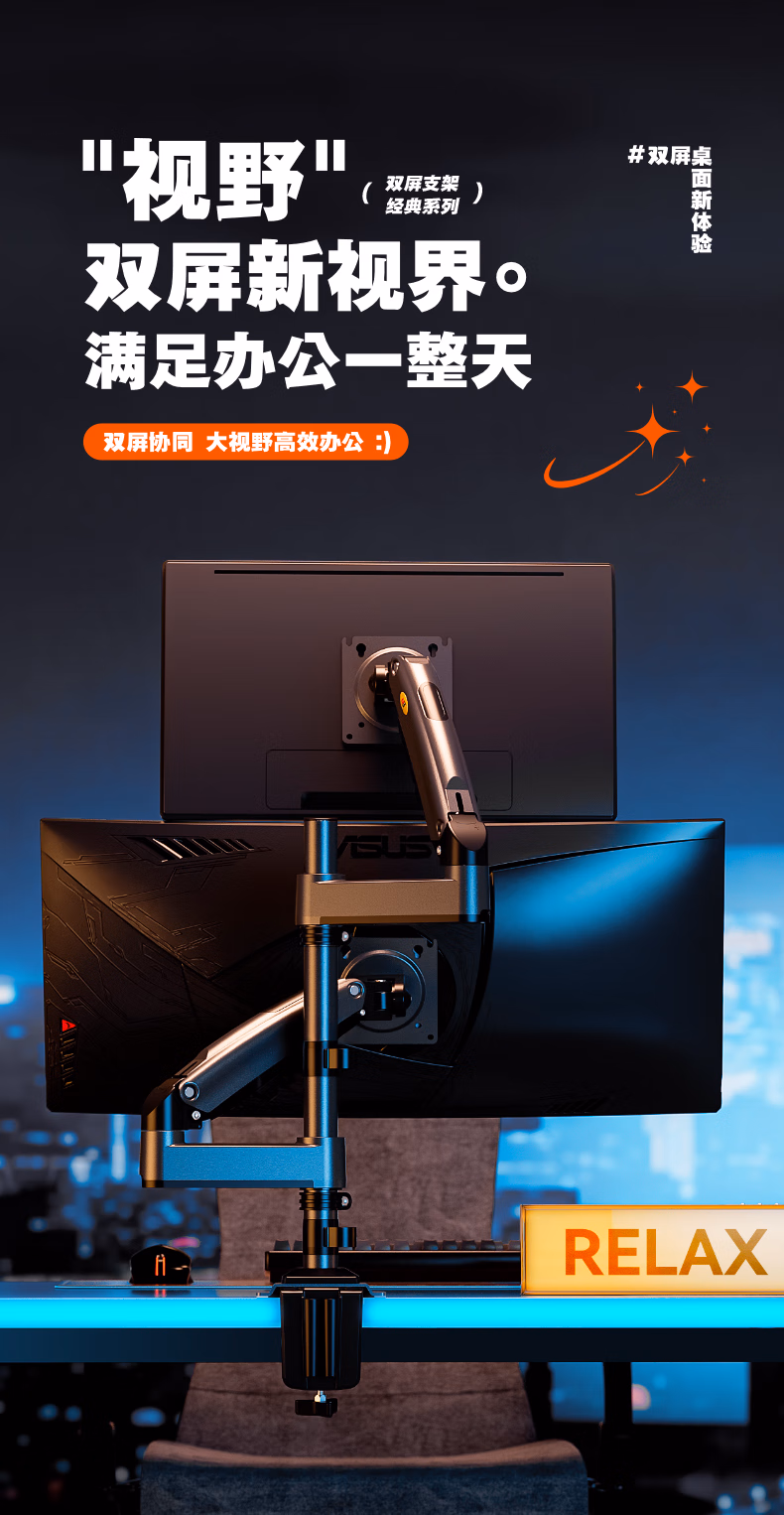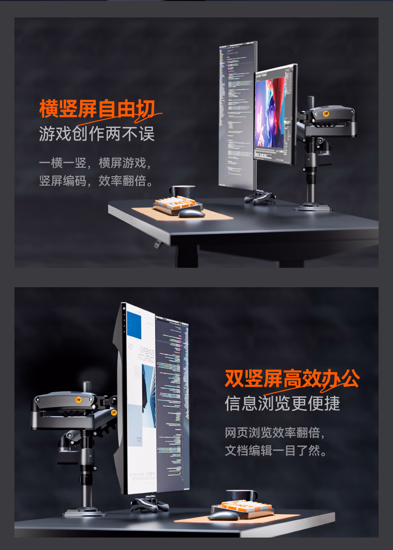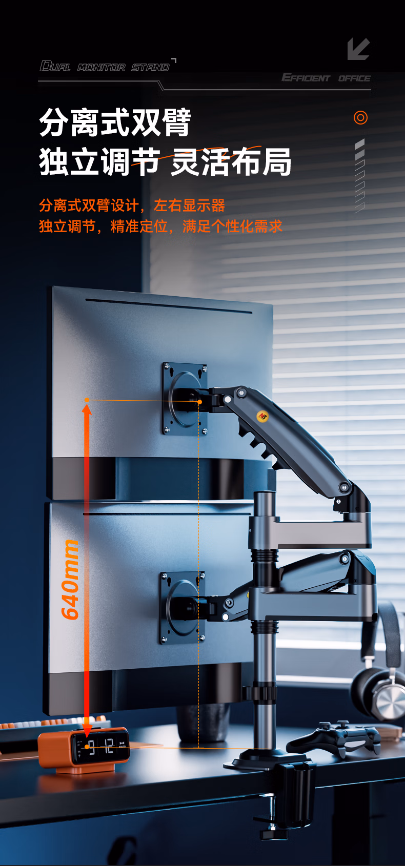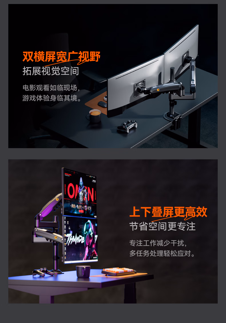 包装清单  :   NBH180显示器支架 双屏显示器支架 显示器支架一拖二 电脑屏幕支架倒挂机械臂 可扩屏上下叠屏支架臂