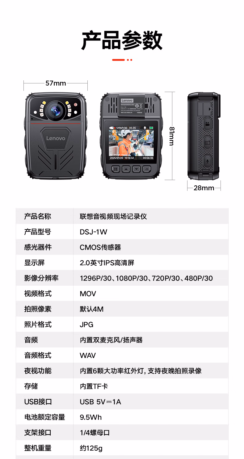 包装清单  :   联想(Lenovo)执法记录仪防爆高清红外夜视摄像相机随身微型录像取证DSJ-1W 64G