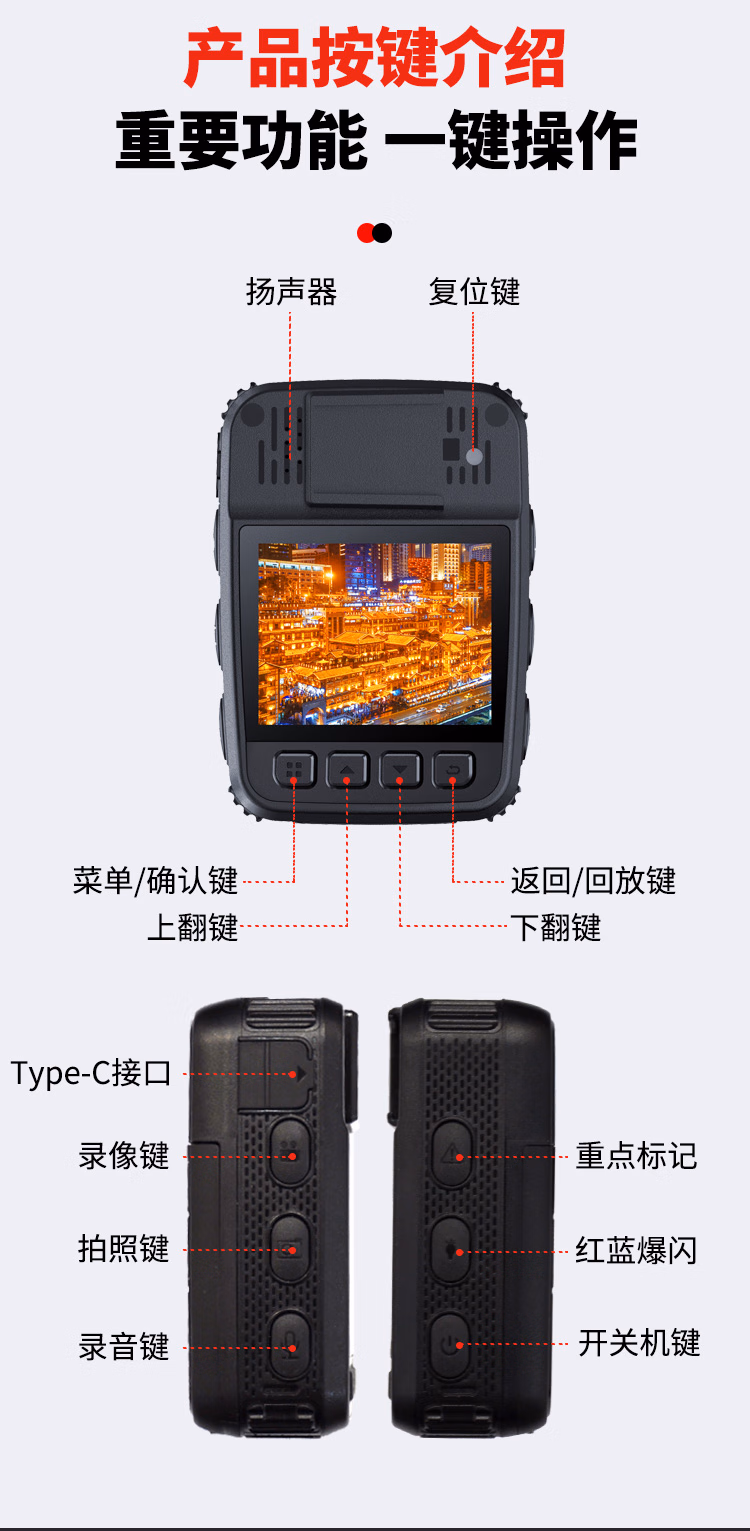 产品材质  :   执法记录仪4K高清红外夜视5800万像素随身录像取证DSJ-1Z 32G